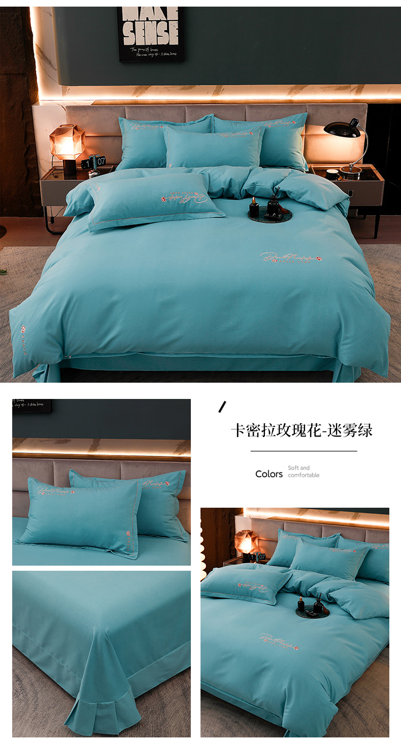 当前位置: 91家纺网 > 商品网购 > 床品套件 > 四件套 > 普通磨毛四件套 > 润淳家居 2026新款全棉磨毛刺绣四件套 卡密拉玫瑰花 迷雾绿