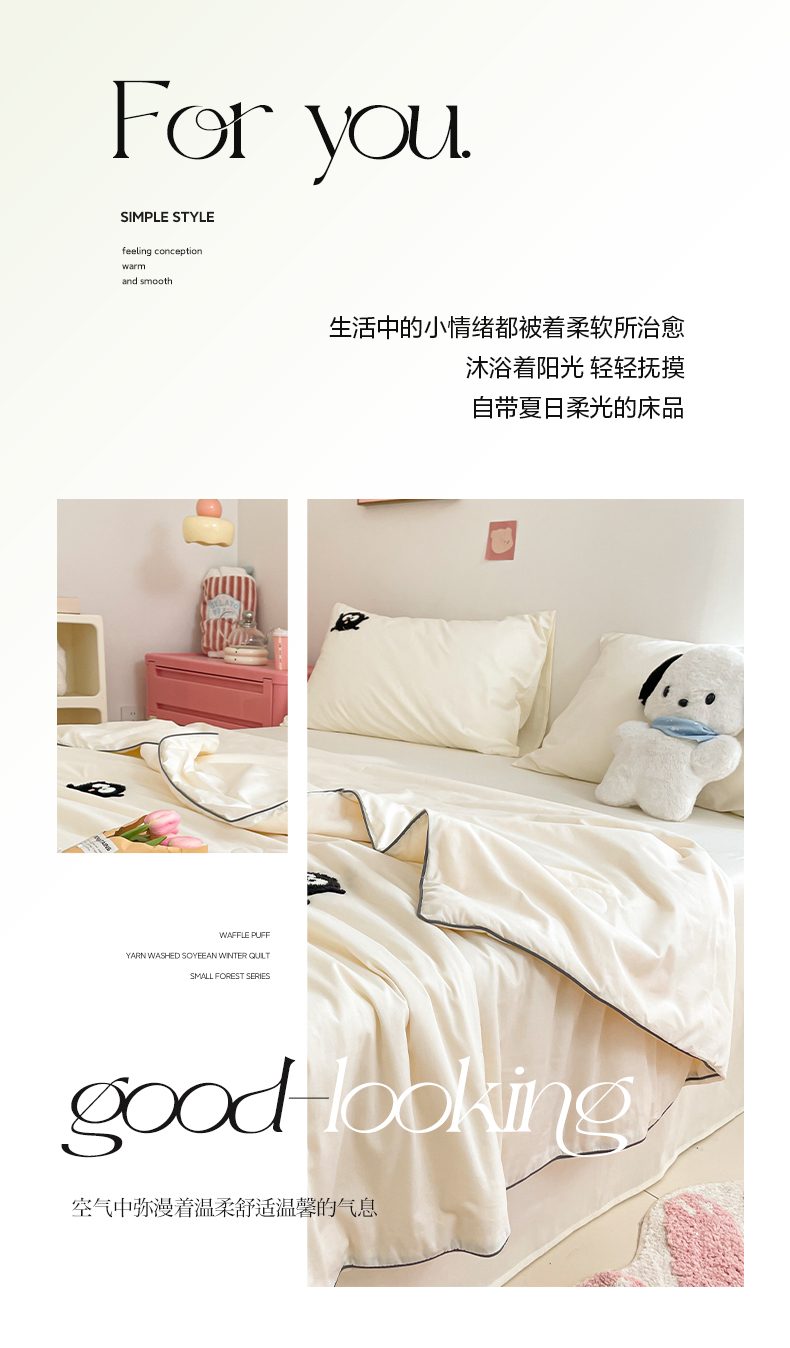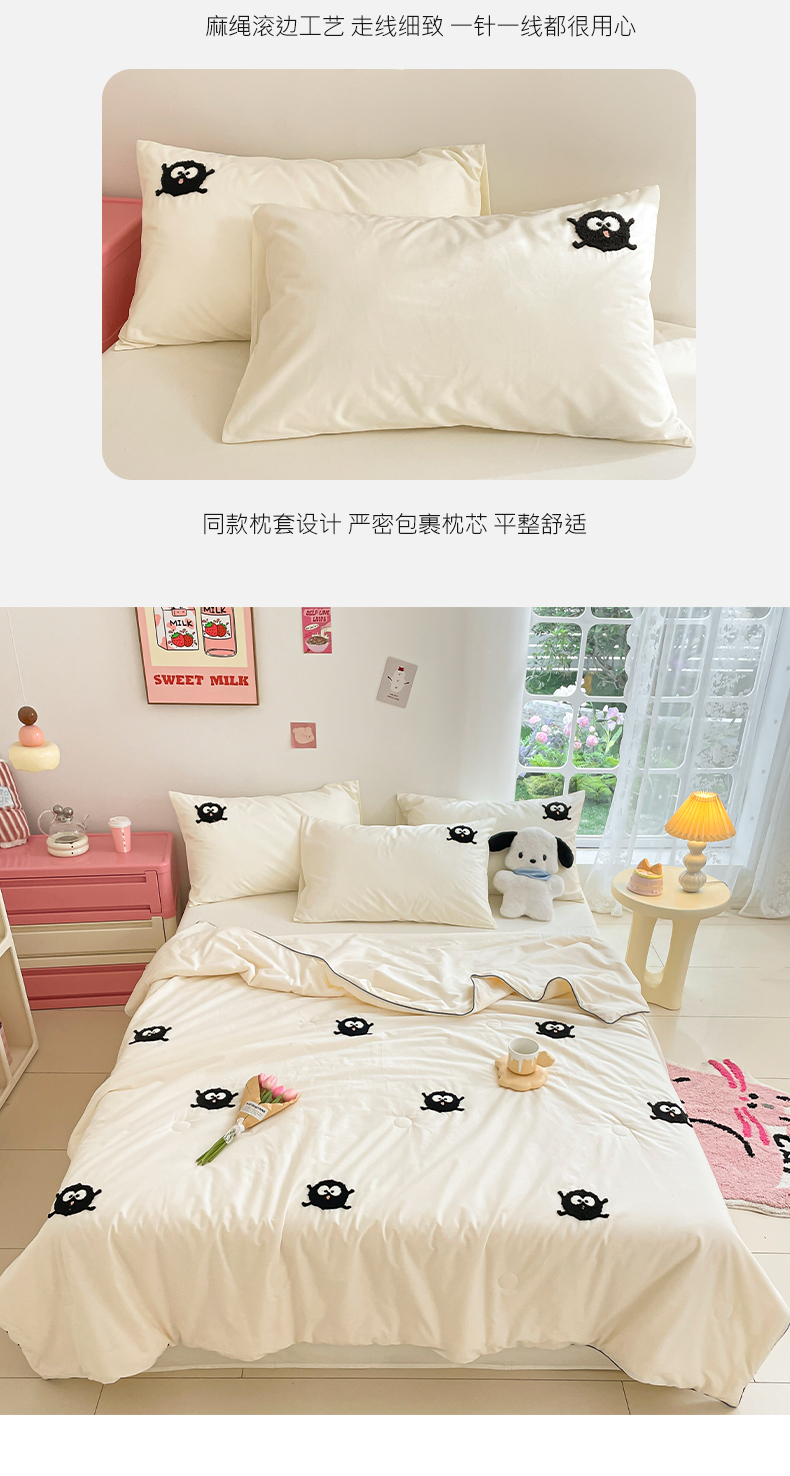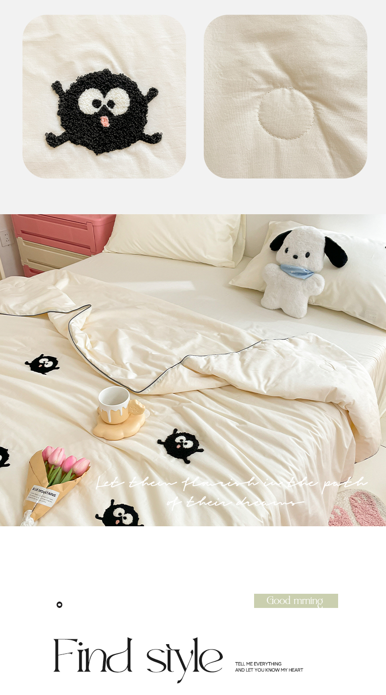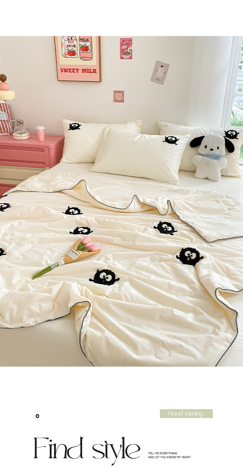 当前位置: 91家纺网 > 商品网购 > 被子 > 夏被 > 莱登卡奴 2025春夏款全棉水洗棉毛巾绣大豆夏被 可爱煤球