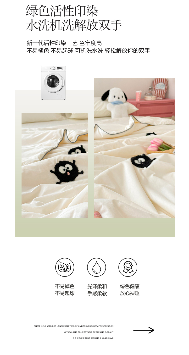 • 91家纺网 家纺一手货源 找家纺 莱登卡奴 2025春夏款全棉水洗棉毛巾绣大豆夏被 可爱煤球