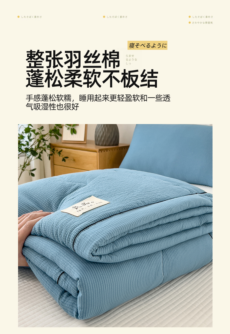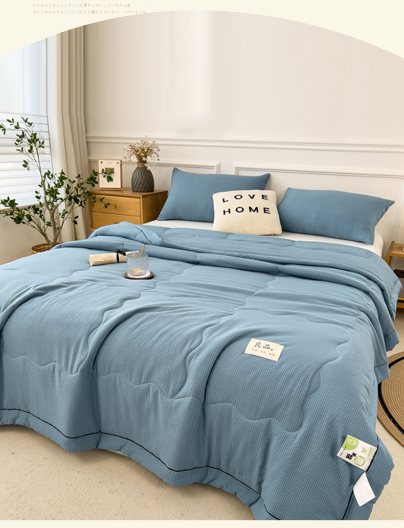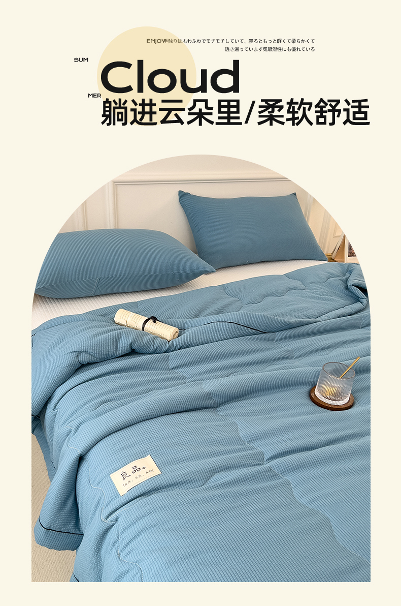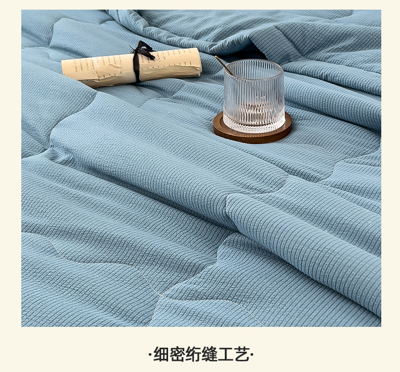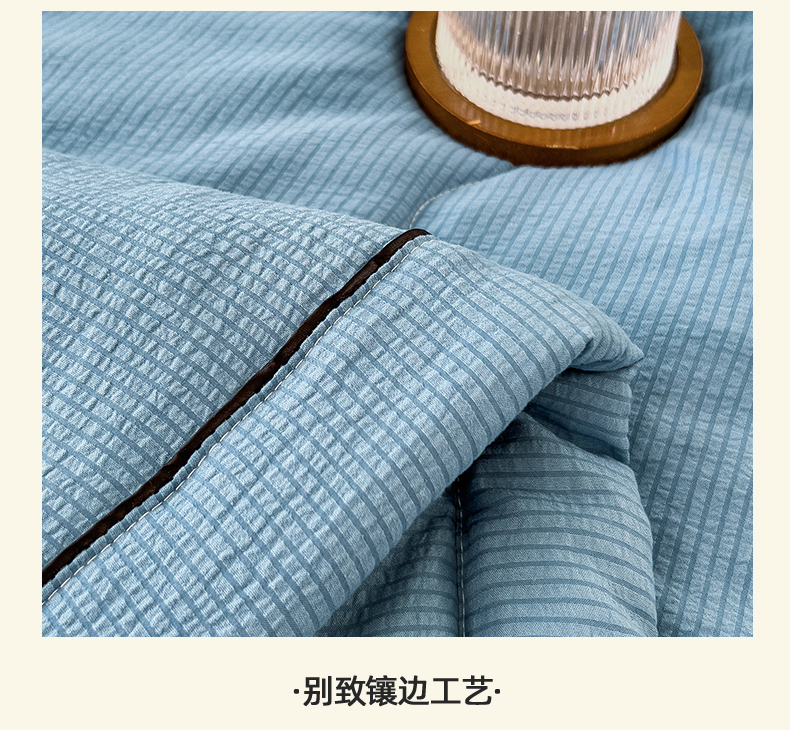 丝幔家纺 2025新款A类泡泡纱镶边款夏被 雾霾蓝