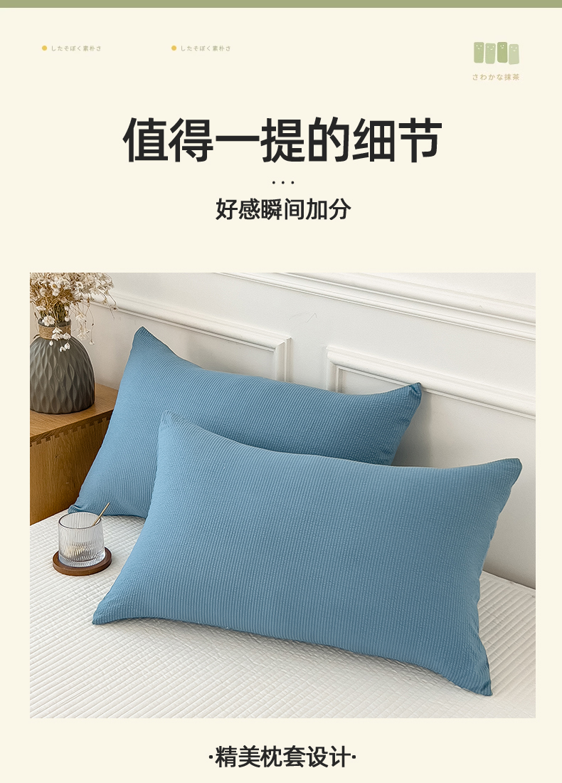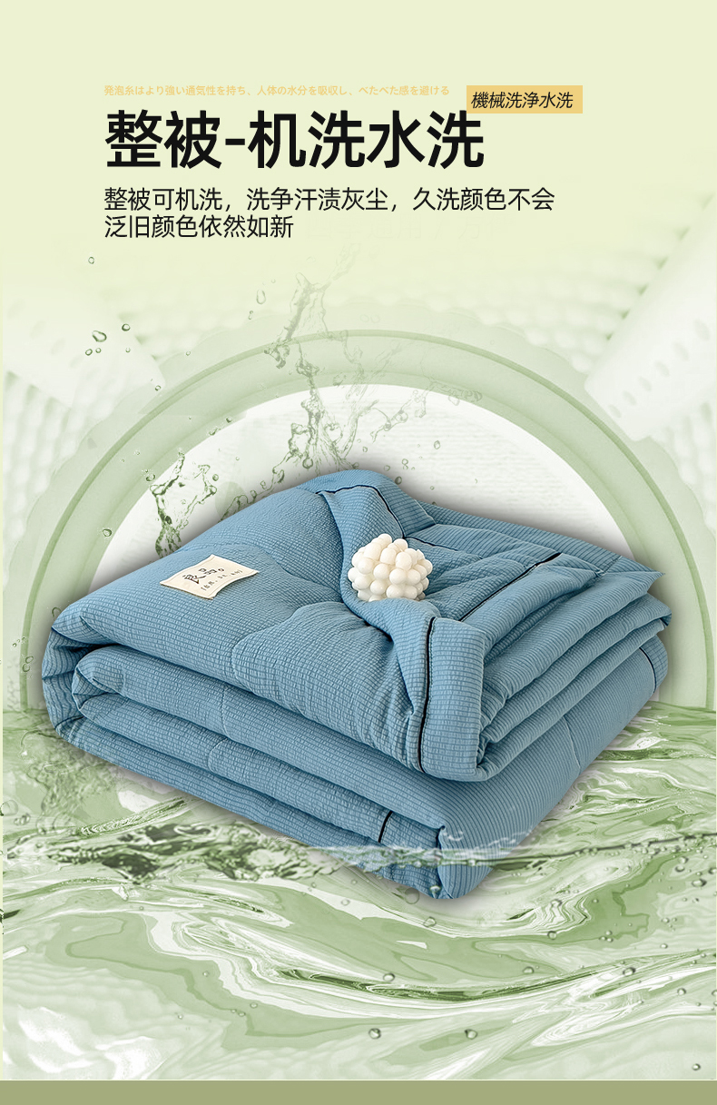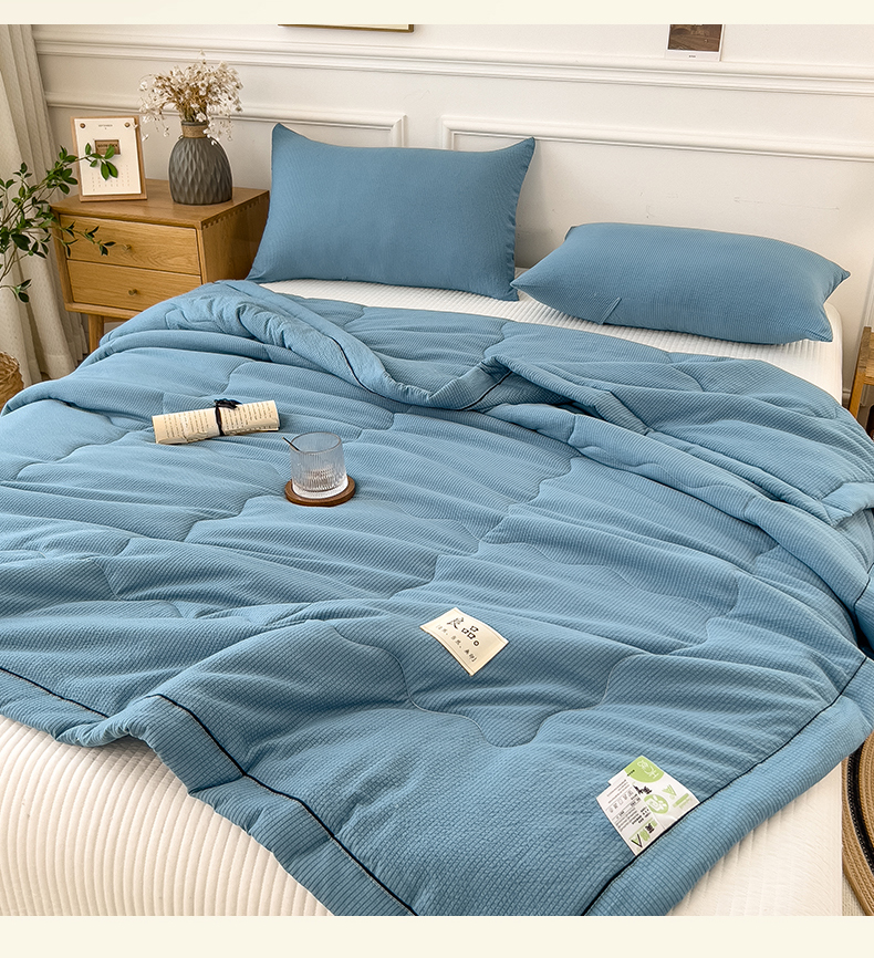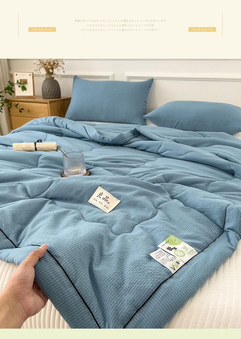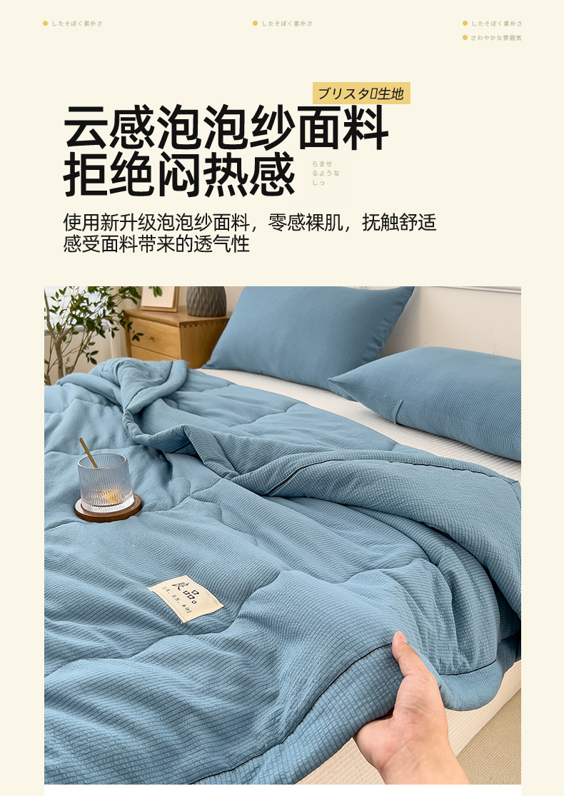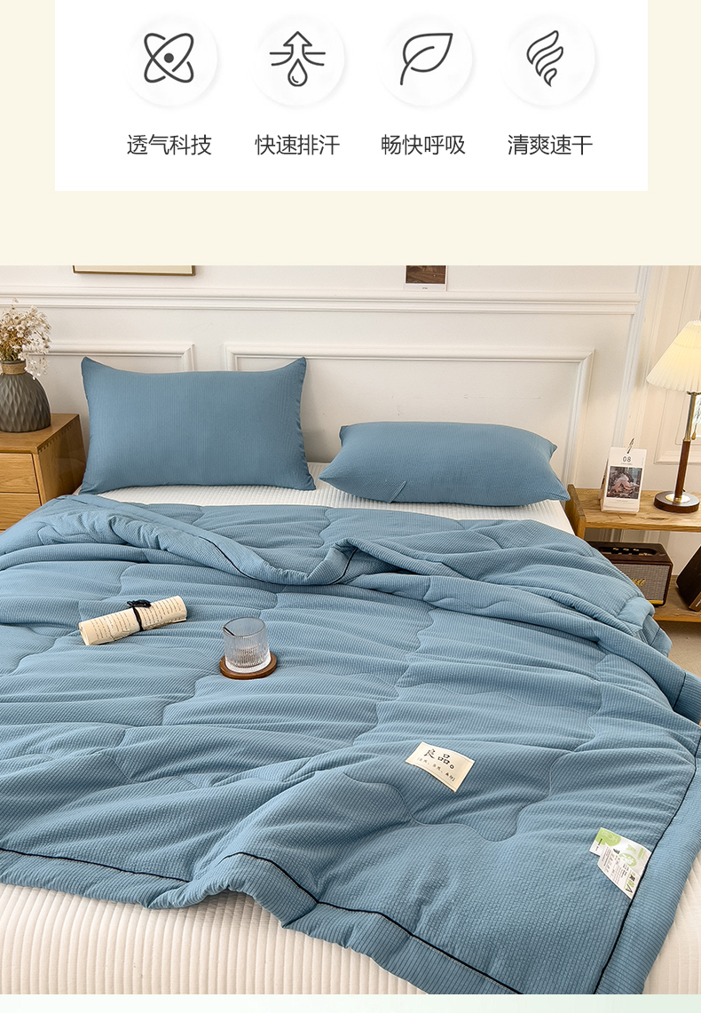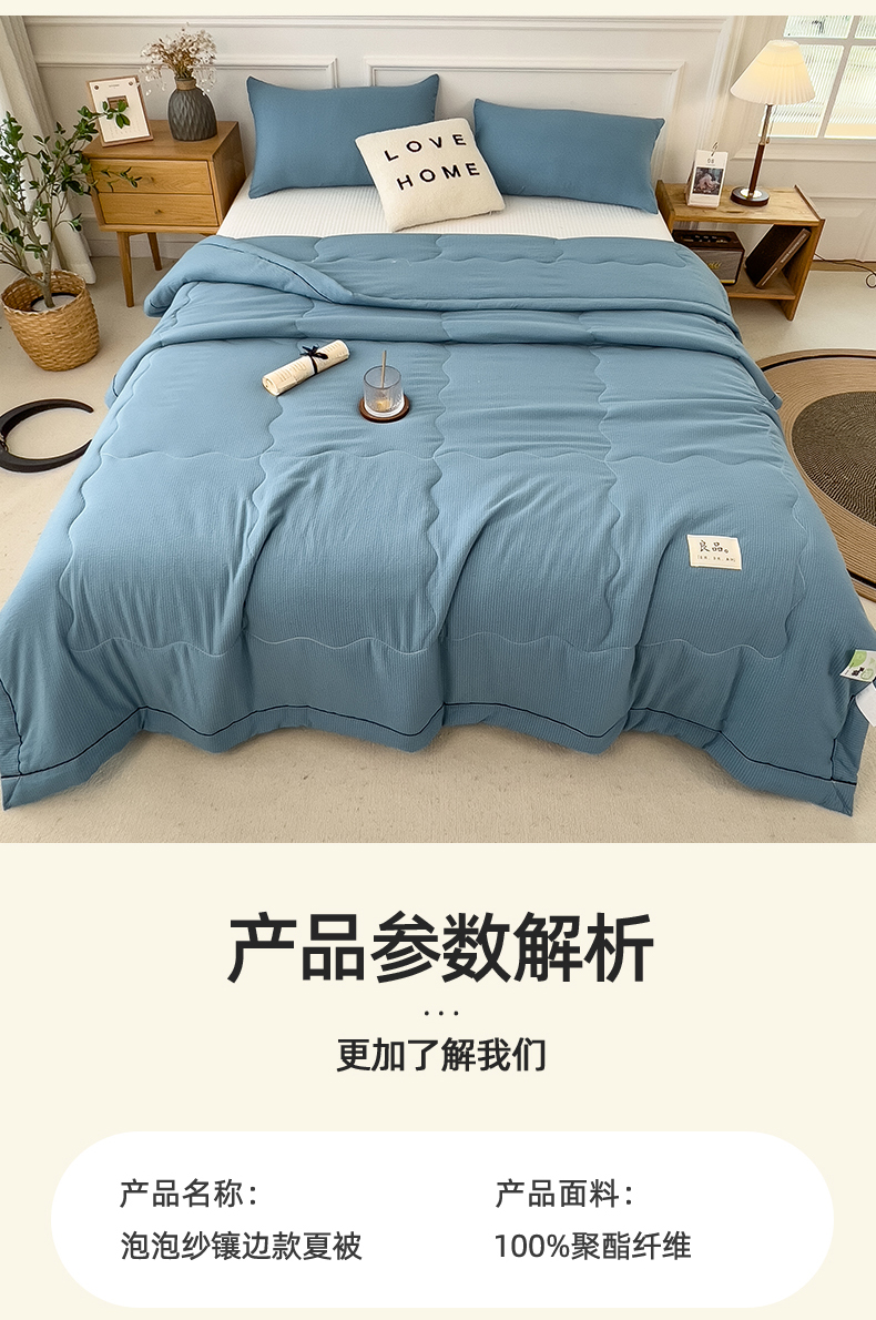 商品名称:丝幔家纺 2025新款A类泡泡纱镶边款夏被 雾霾蓝