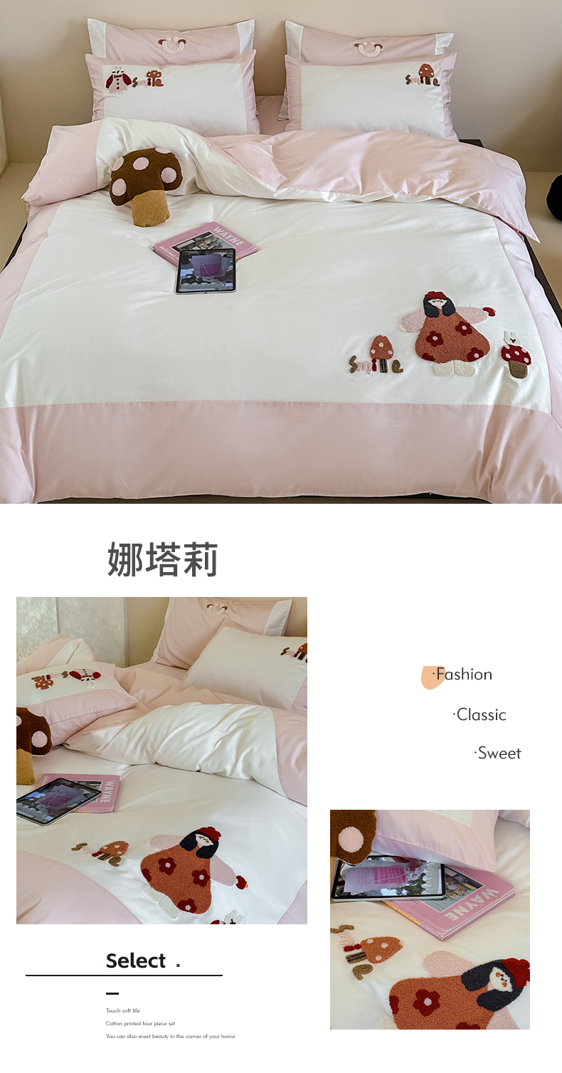 商品名称:名品优仓 2024新款大拼角水洗棉四件套 娜塔莉