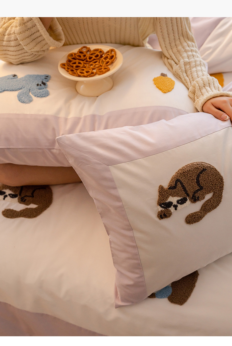 名品优仓 2023新款面包狗系列水洗棉毛巾绣四件套 面包狗,面包狗