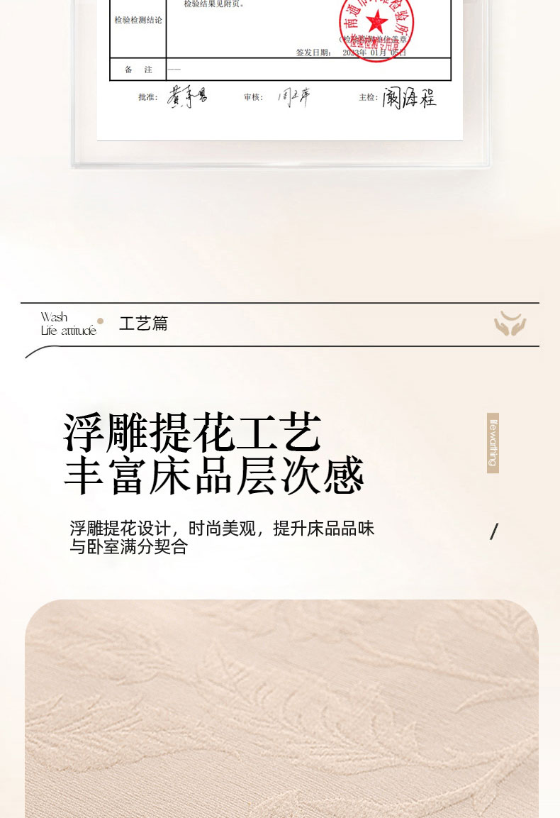 商品名称:金艾草 2024新款水洗全棉浮雕提花床盖四件套 蜀锦-茉莉白