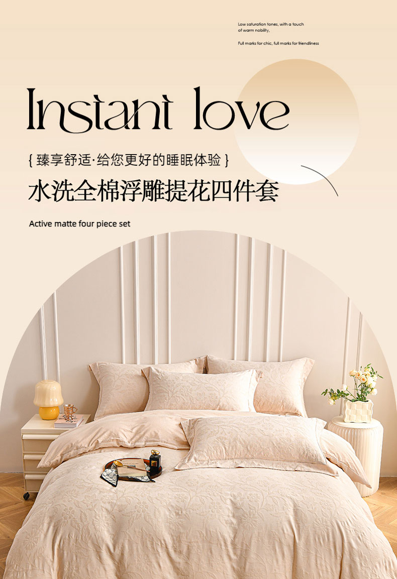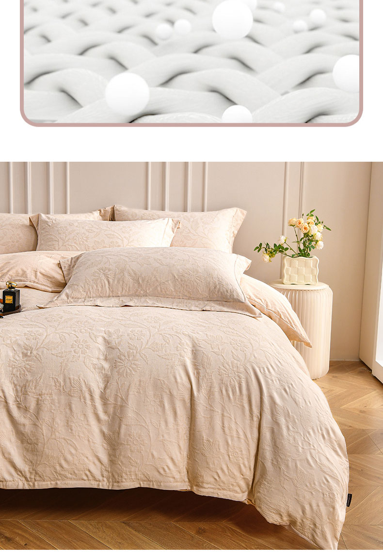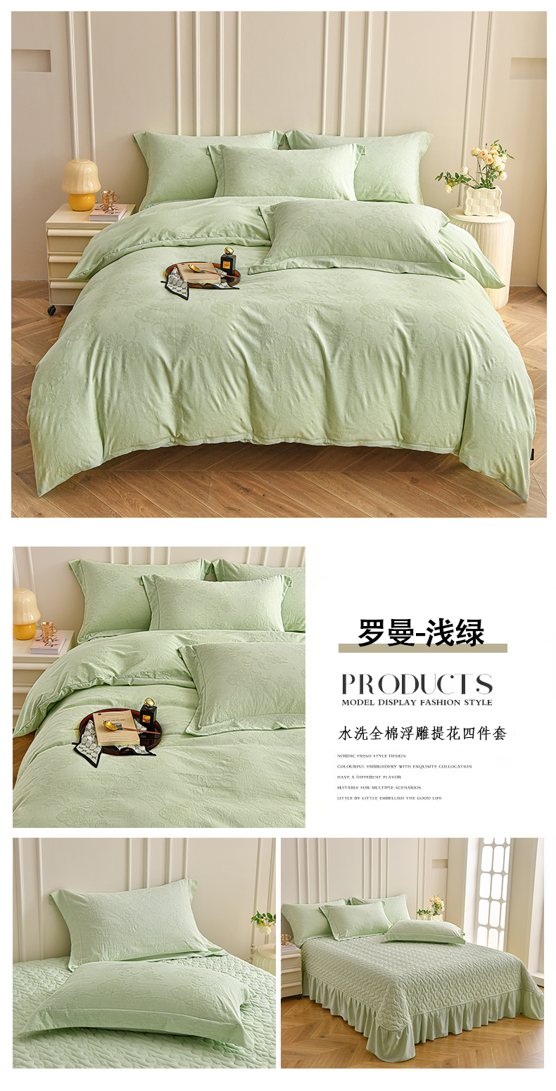 (总)金艾草 2024新款水洗全棉浮雕提花床盖四件套,圣罗纳-灰,片叶情-豆绿,罗曼-浅绿,蜀锦-茉莉白,轻颜-珊瑚粉