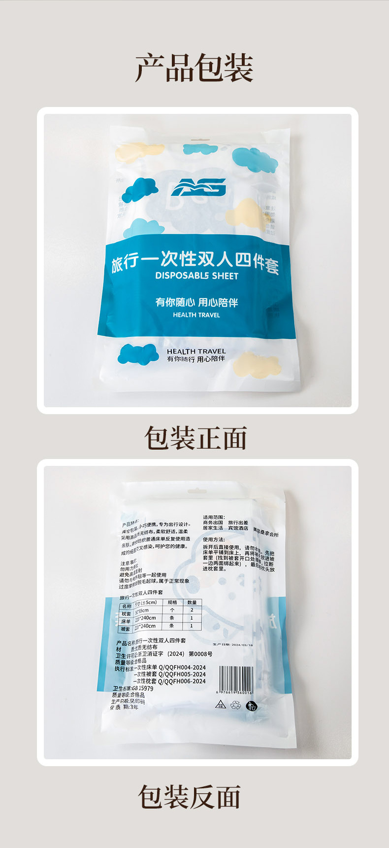 当前位置: 91家纺网 > 商品网购 > 床品套件 > 四件套 > 其它四件套 > (总)爱港家纺 2024新款一次性四件套酒店旅游旅行床上用品隔脏便携带纯色加厚四件套(一次性产品不退不换)
