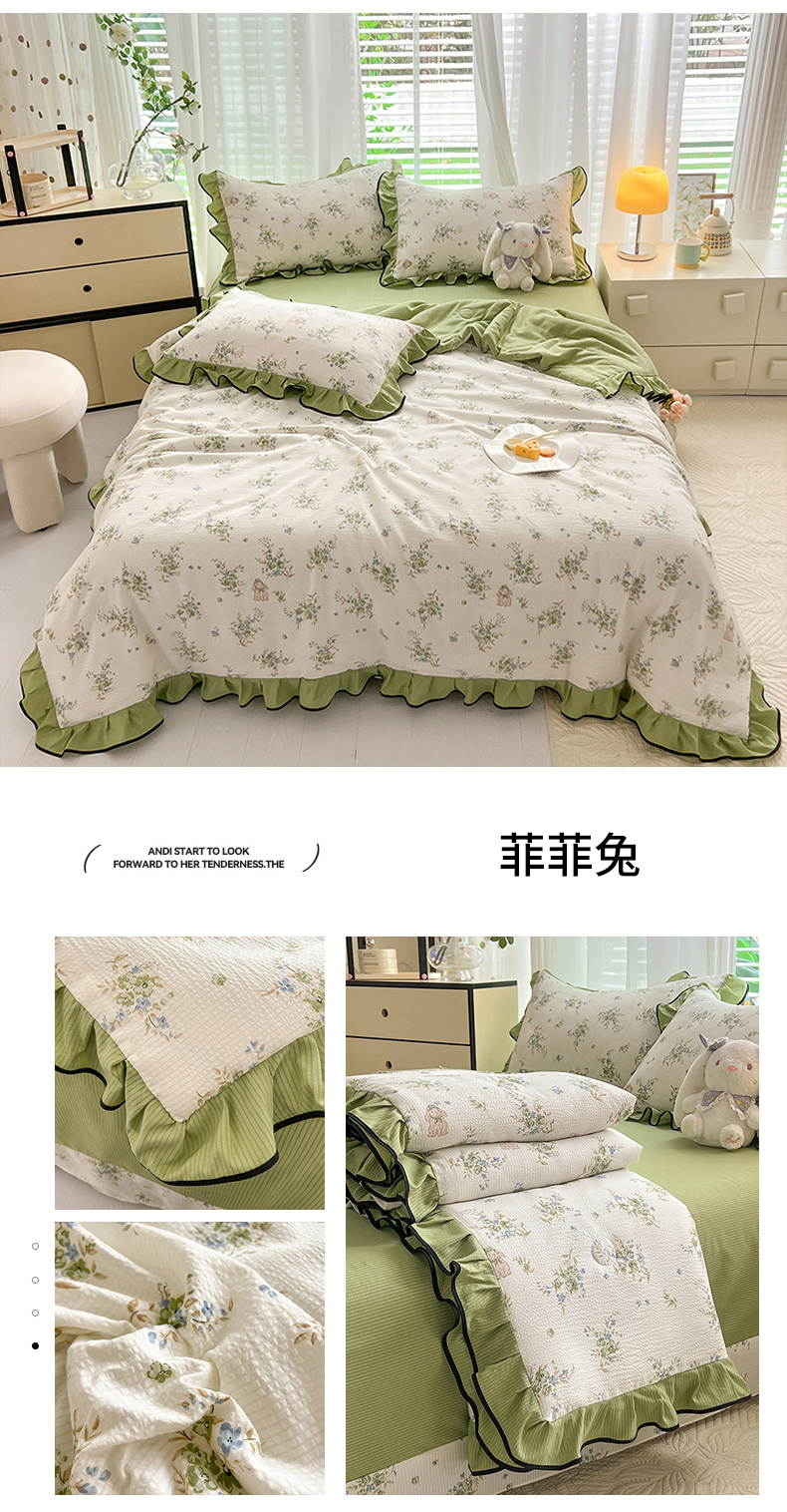 商品名称:韩约 2024新款1有氧提花时尚花边款泡泡夏被棉四件套 菲菲兔