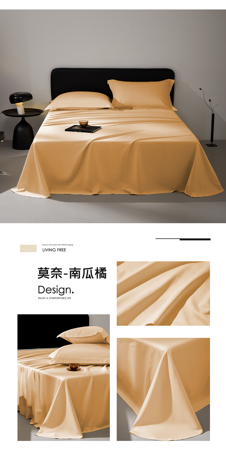 商品名称:秀色家纺 2025新款高端酒店纯色50支贡缎长绒棉床单单件纯棉全棉贡缎可裸睡单双人 莫奈-南瓜橘