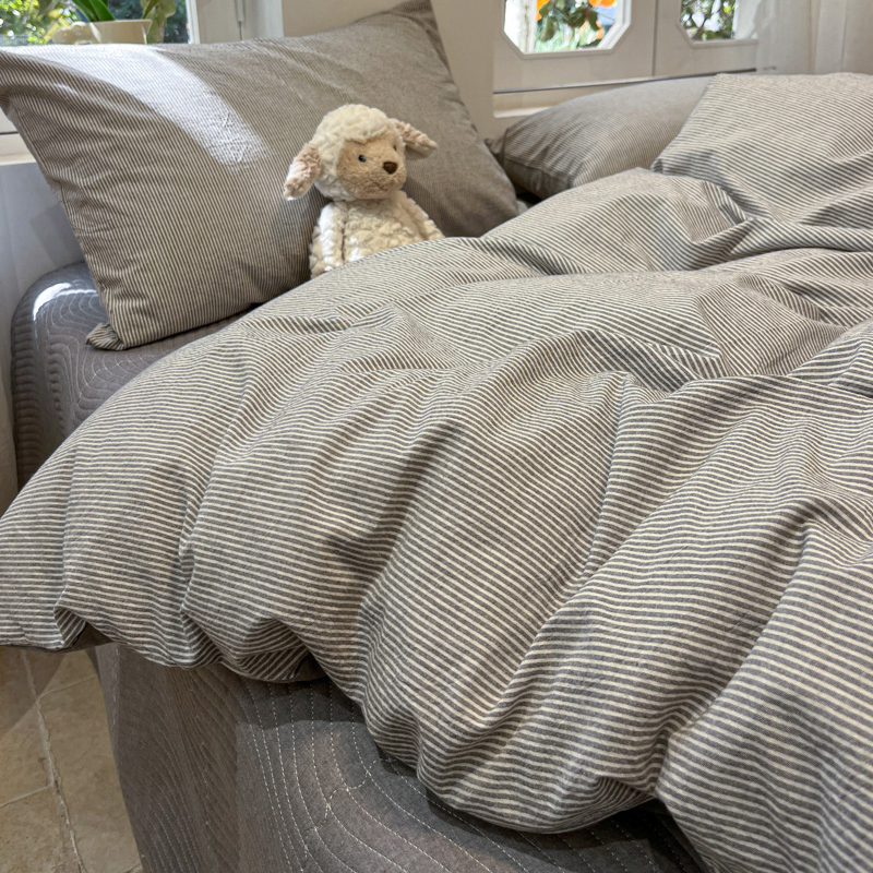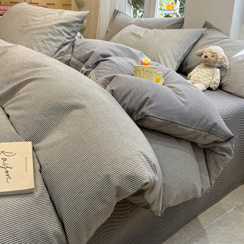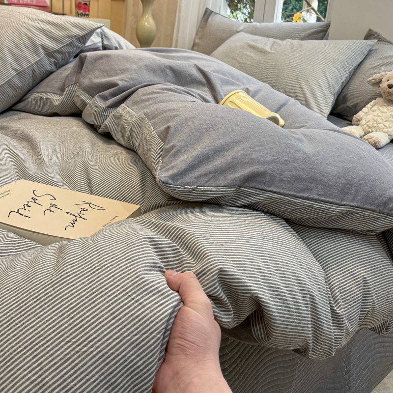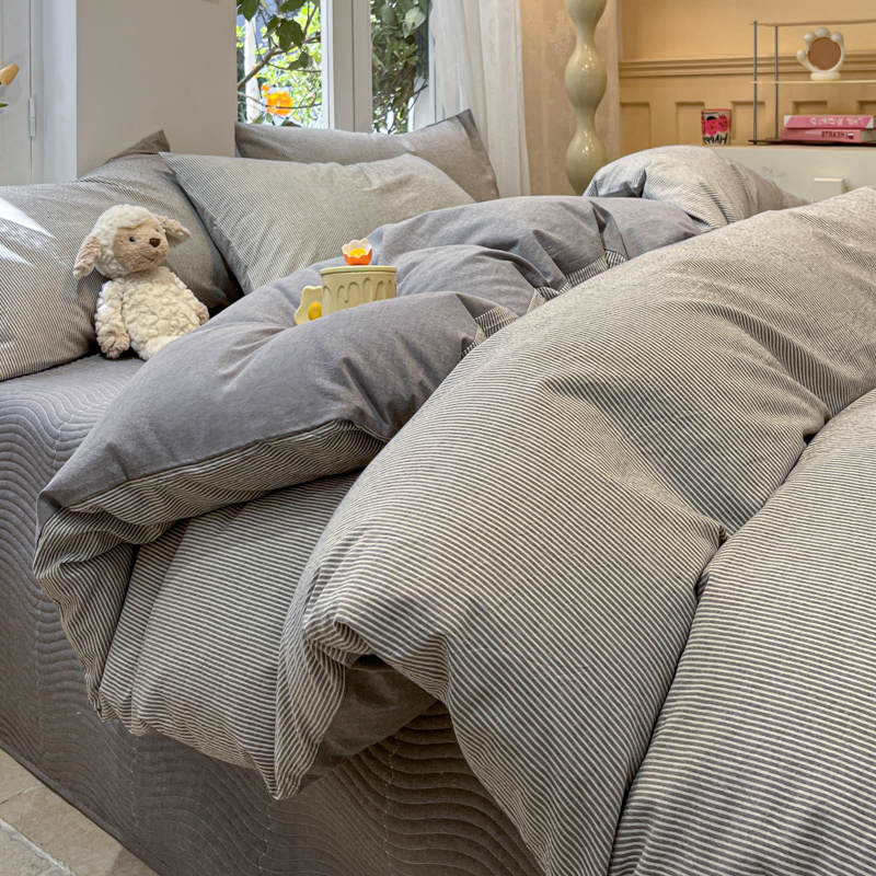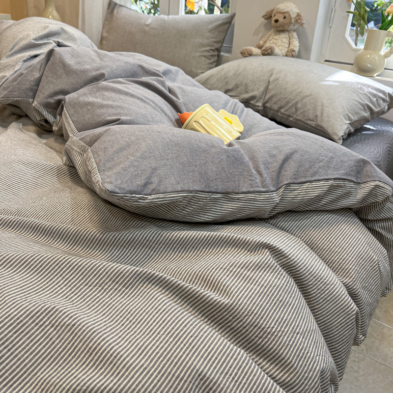 喜居 2024新款全棉色织被套单被套纯棉被套全棉被套 小蜜条灰