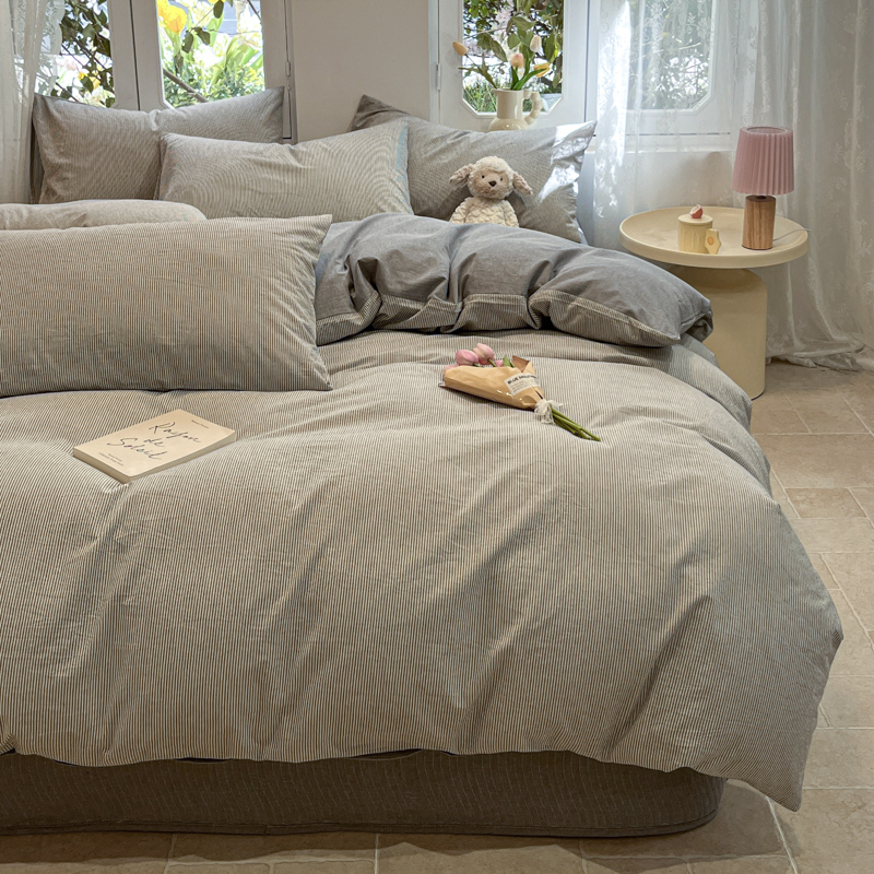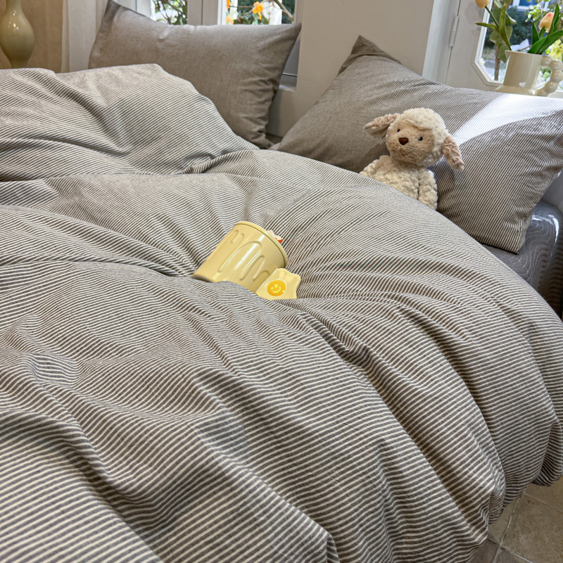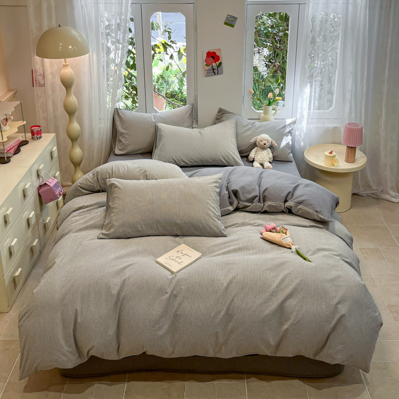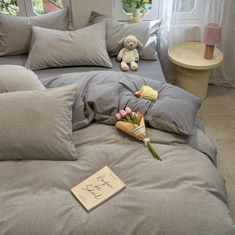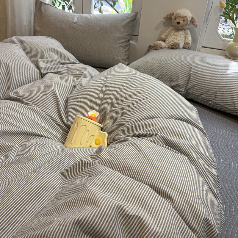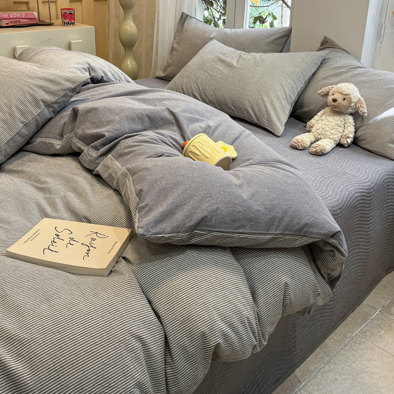 喜居 2024新款全棉色织被套单被套纯棉被套全棉被套 小蜜条灰