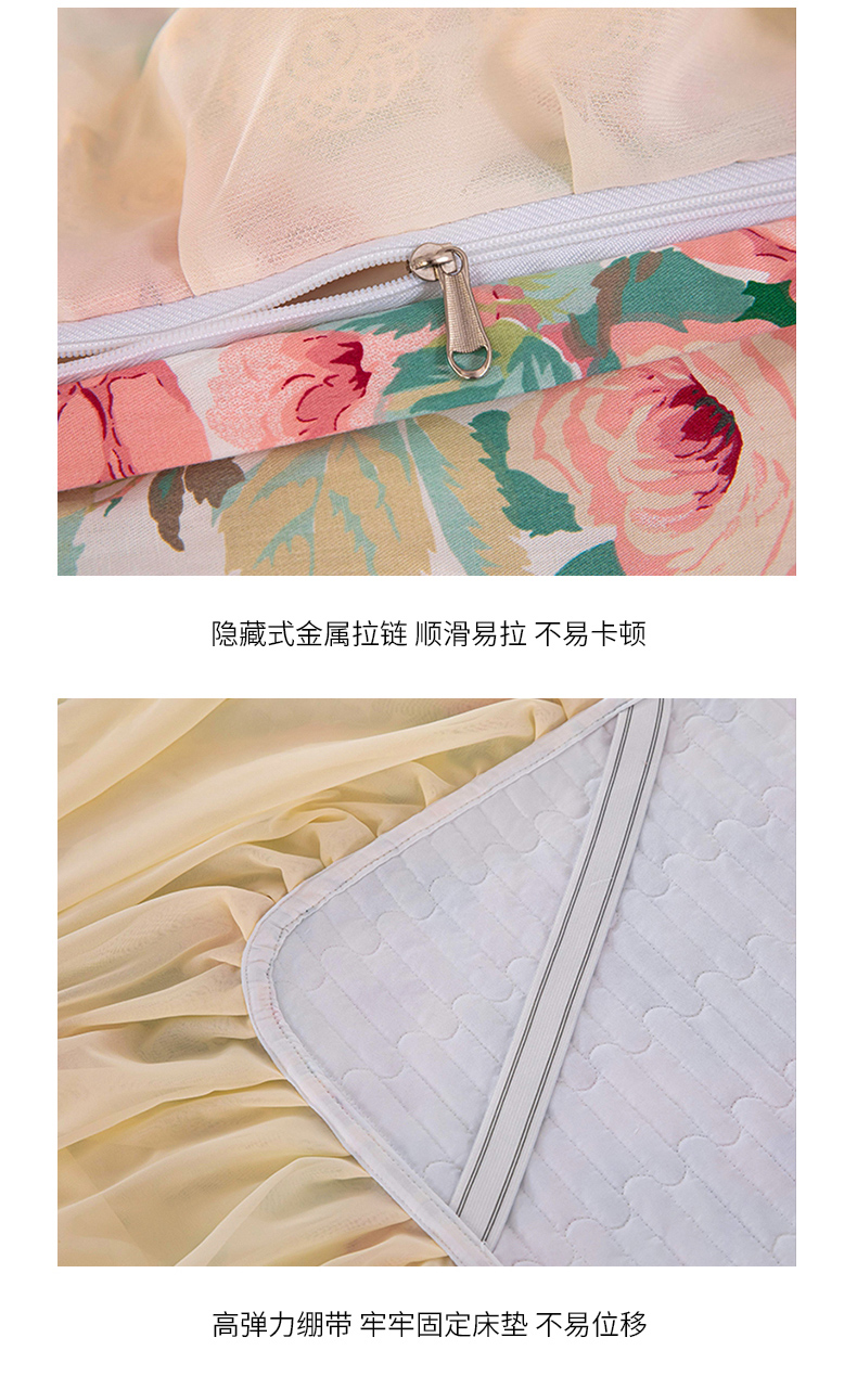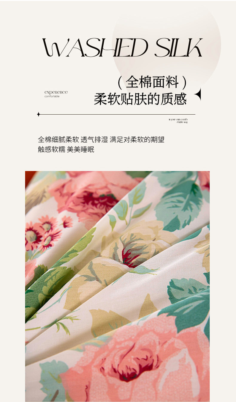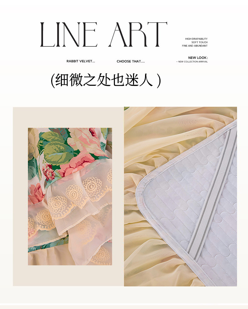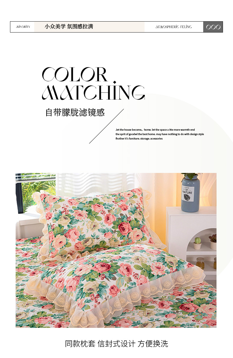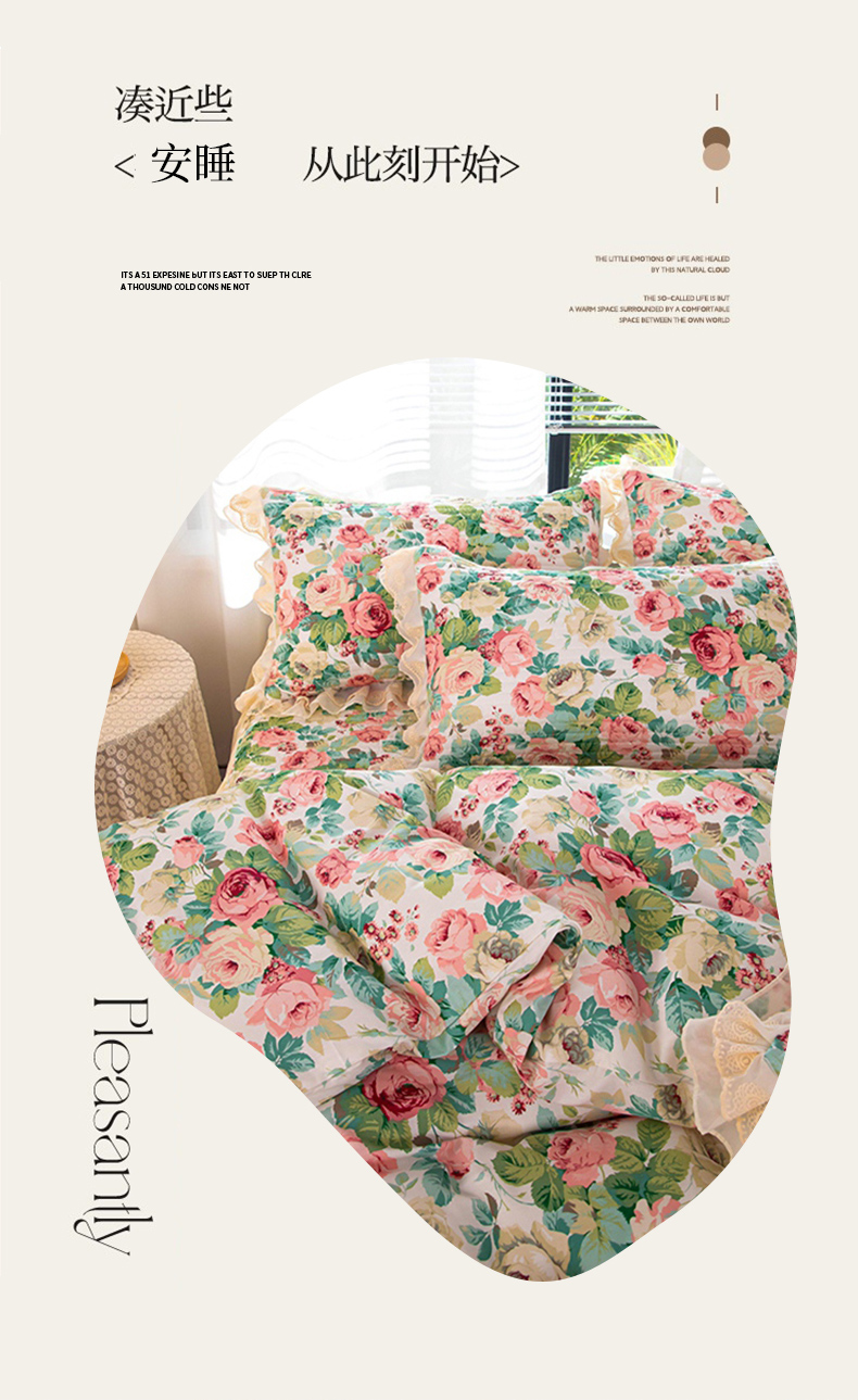 当前位置: 91家纺网 > 商品网购 > 床品套件 > 四件套 > 全棉普通四件套 > 木兰花 2024新款全棉印花被套蕾丝夹棉床裙款四件套 繁花