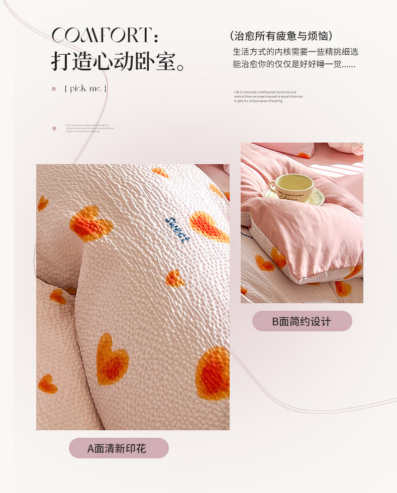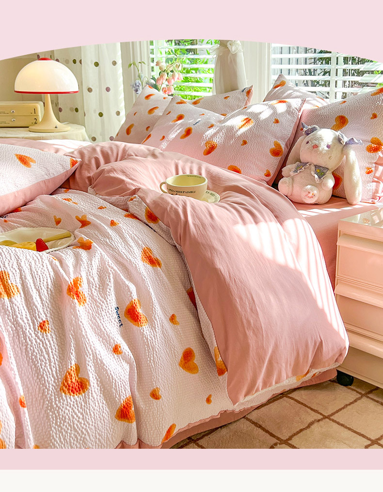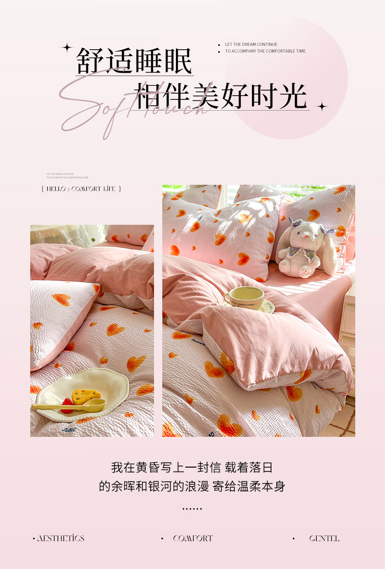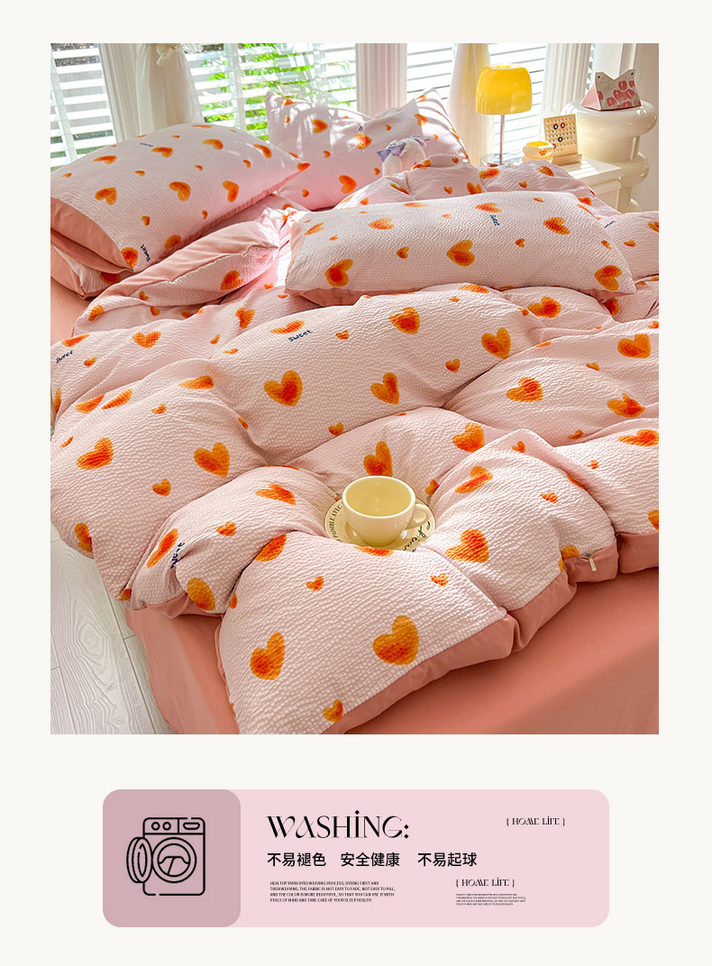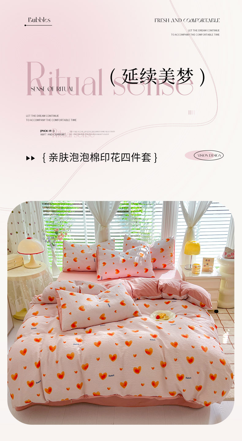 当前位置: 91家纺网 > 商品网购 > 床品套件 > 四件套 > 水洗棉四件套 > 妖妖家纺 2024新款有氧水洗泡泡棉印花四套泡芙棉四件套 心动
