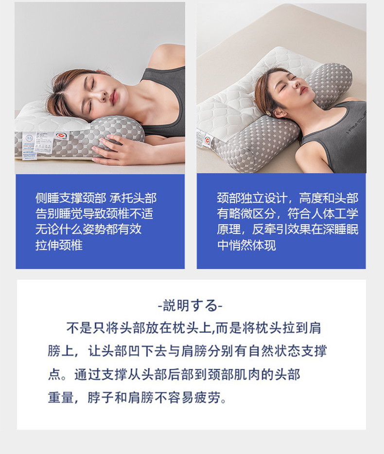 当前位置: 91家纺网 > 商品网购 > 枕头/枕芯/保健枕/颈椎枕 > 普通枕芯 > 贵夫人 2024新款A类日式反牵引乳胶护颈枕枕头枕芯 浅灰 高枕48*74cm/只