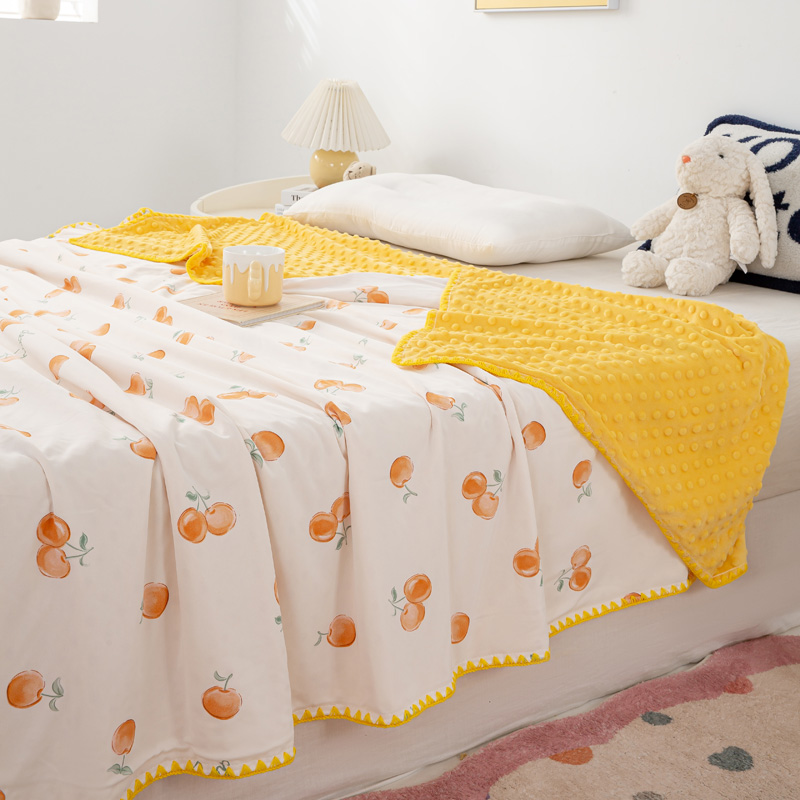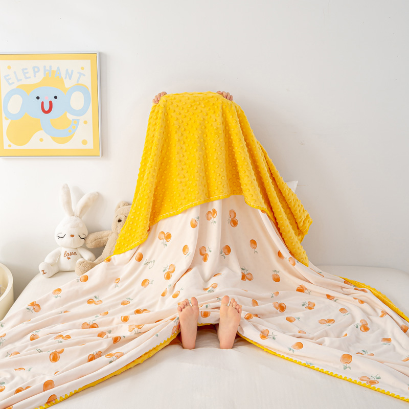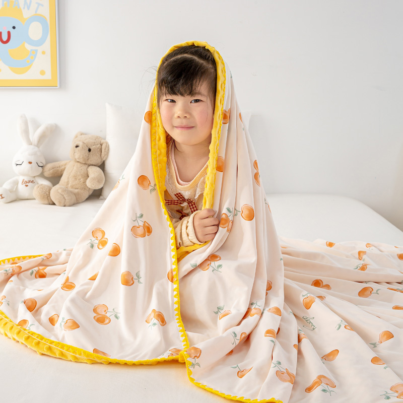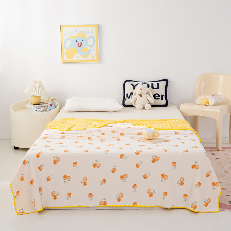 商品名称:柏薇 2024新款儿童凉感针织豆豆绒盖毯 橘子