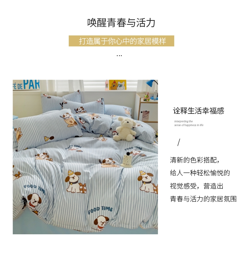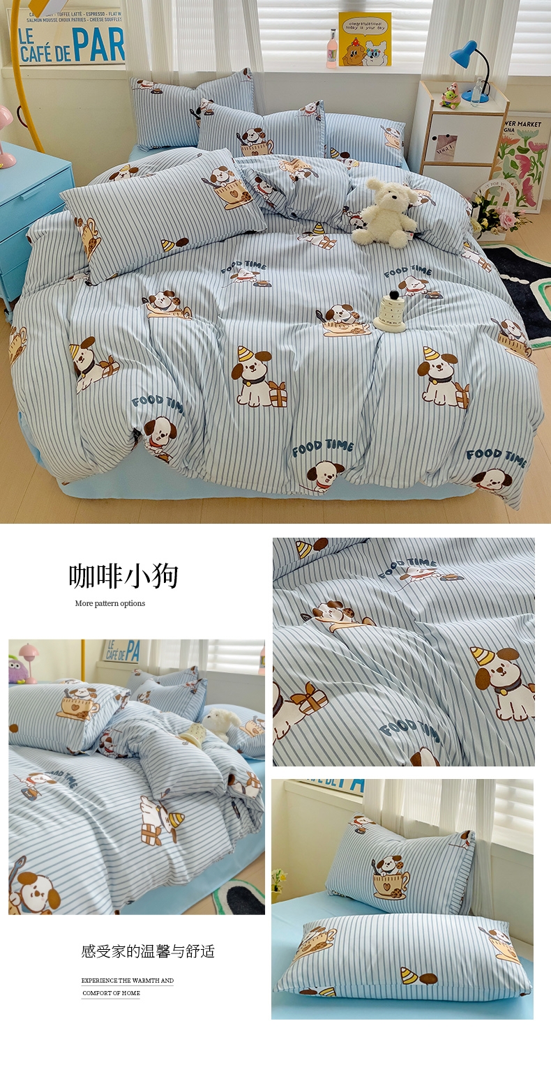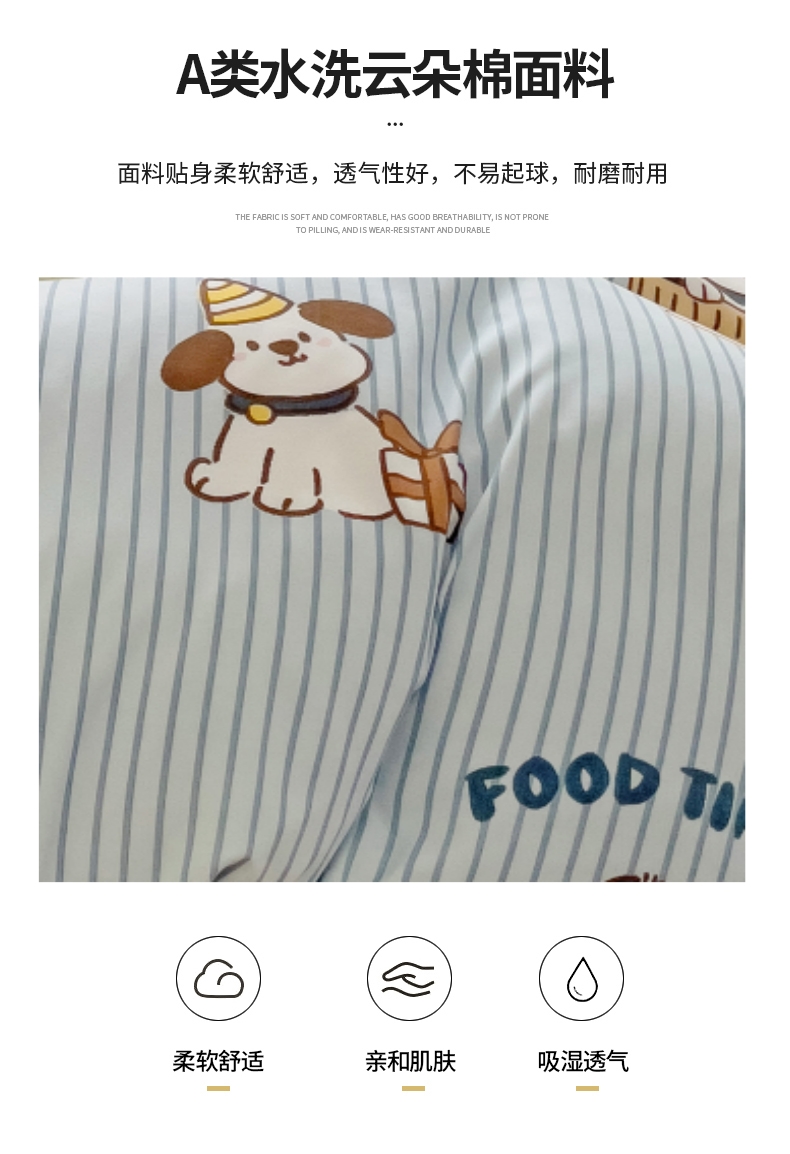 商品名称:慕晨 2024新款A类母婴级水洗云朵棉单被套床上用品卡通儿童宿舍 咖啡小狗