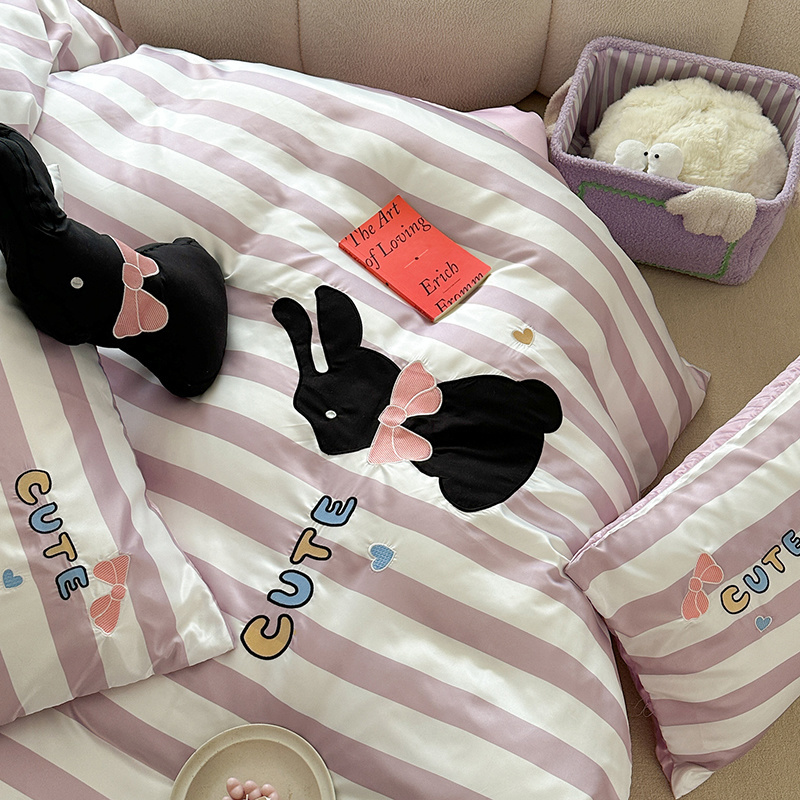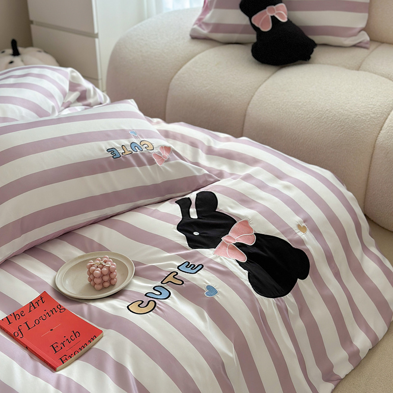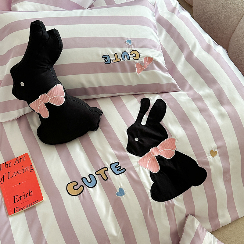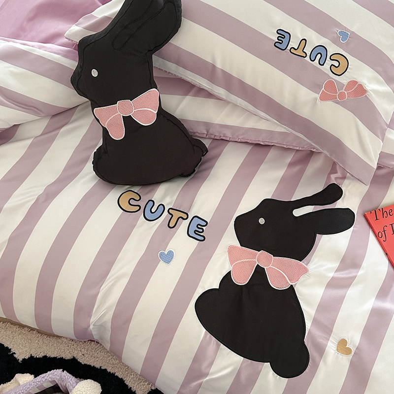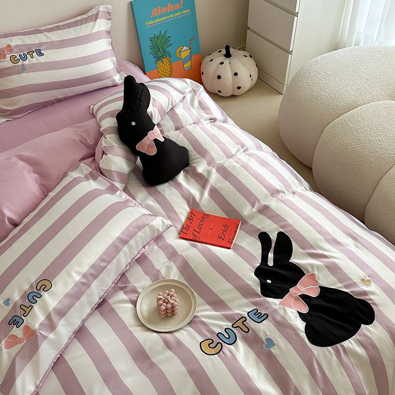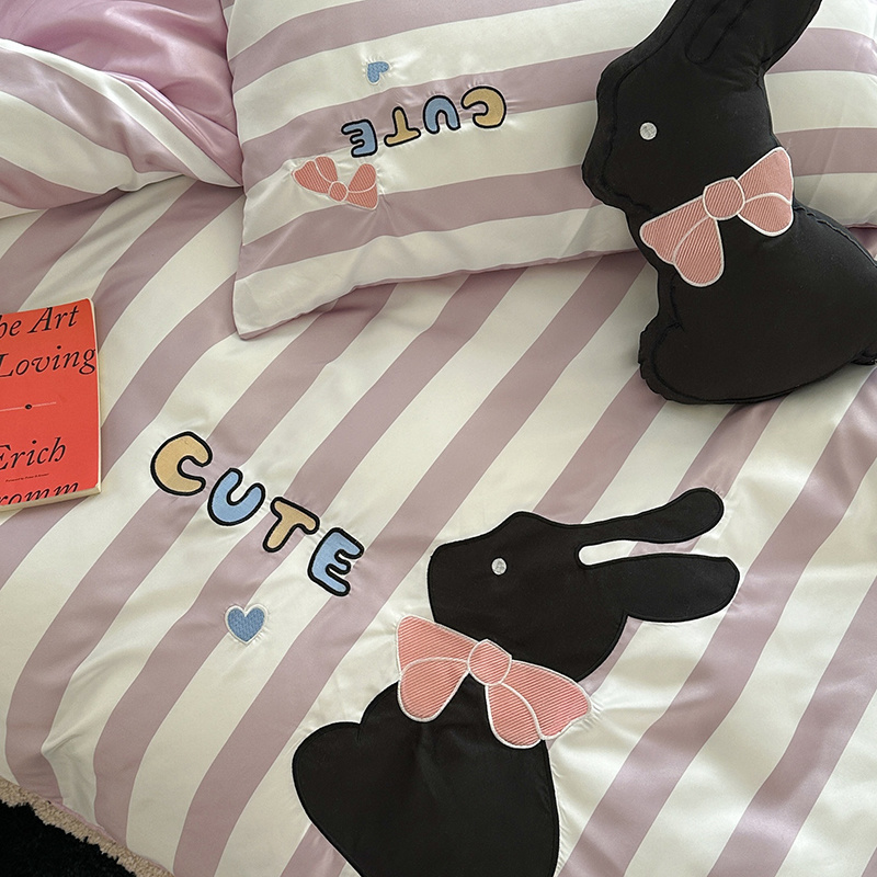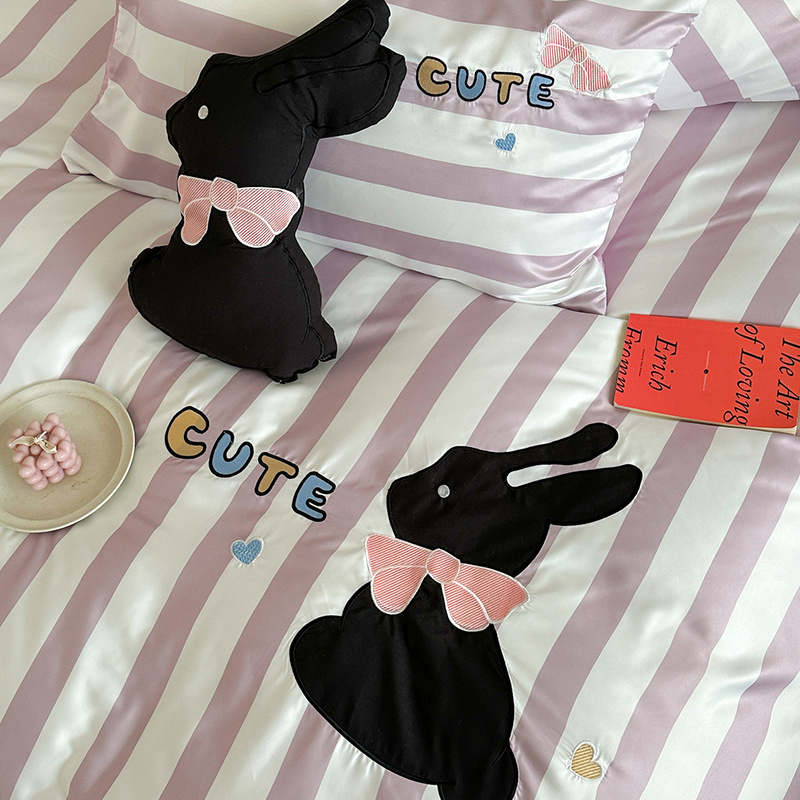 优悦2024新款冰丝卡通贴布绣四件套 小黑兔