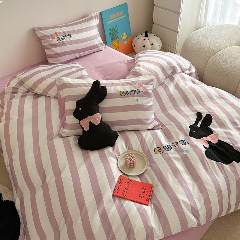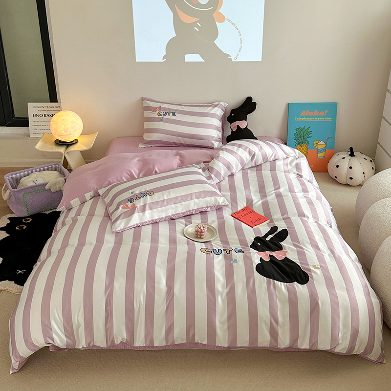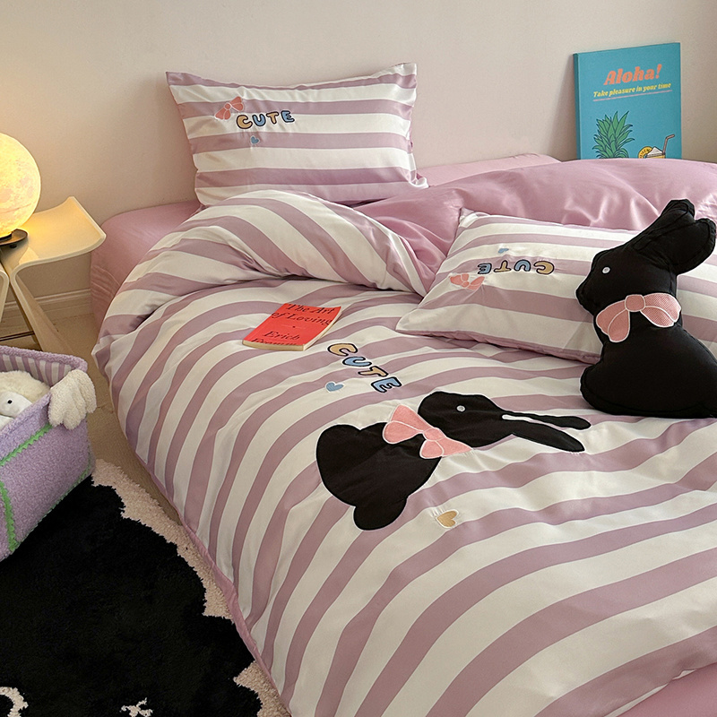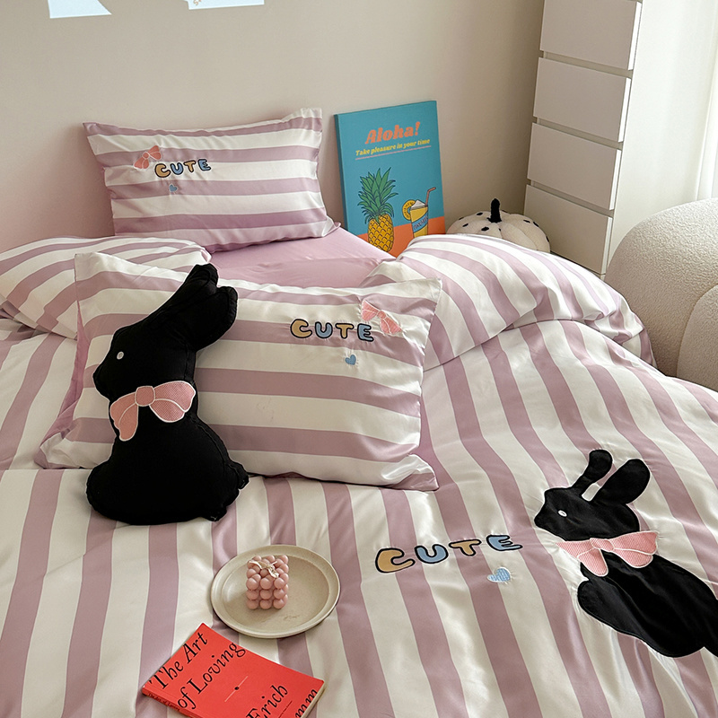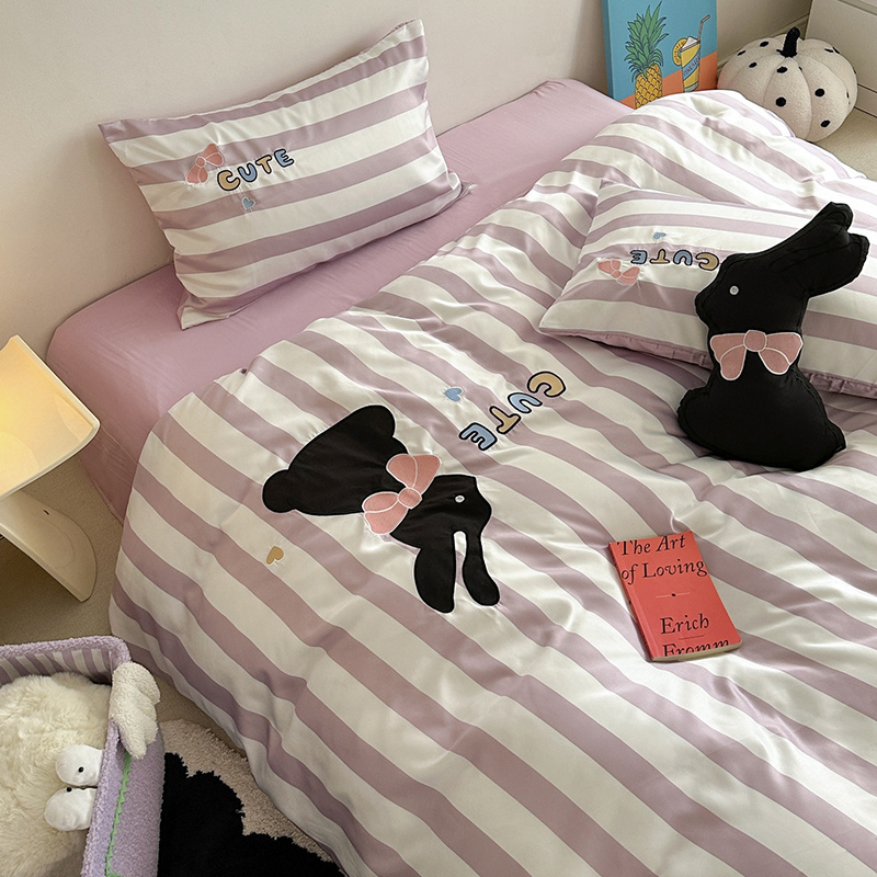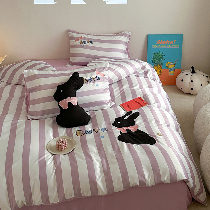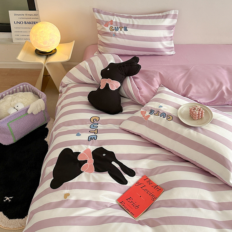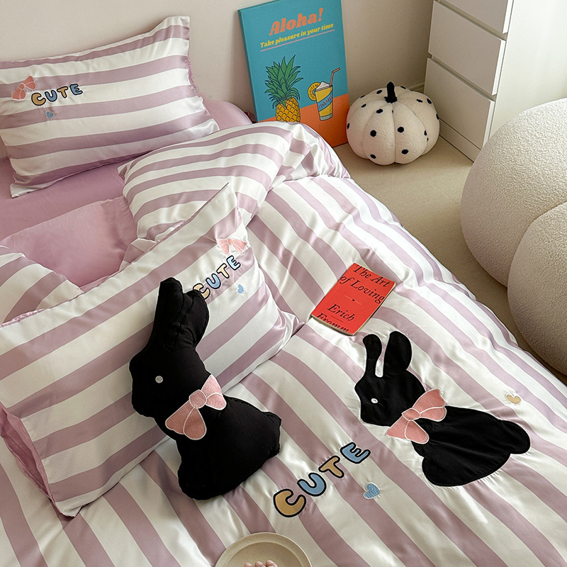 优悦2024新款冰丝卡通贴布绣四件套 小黑兔