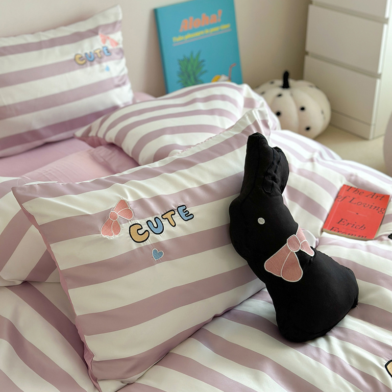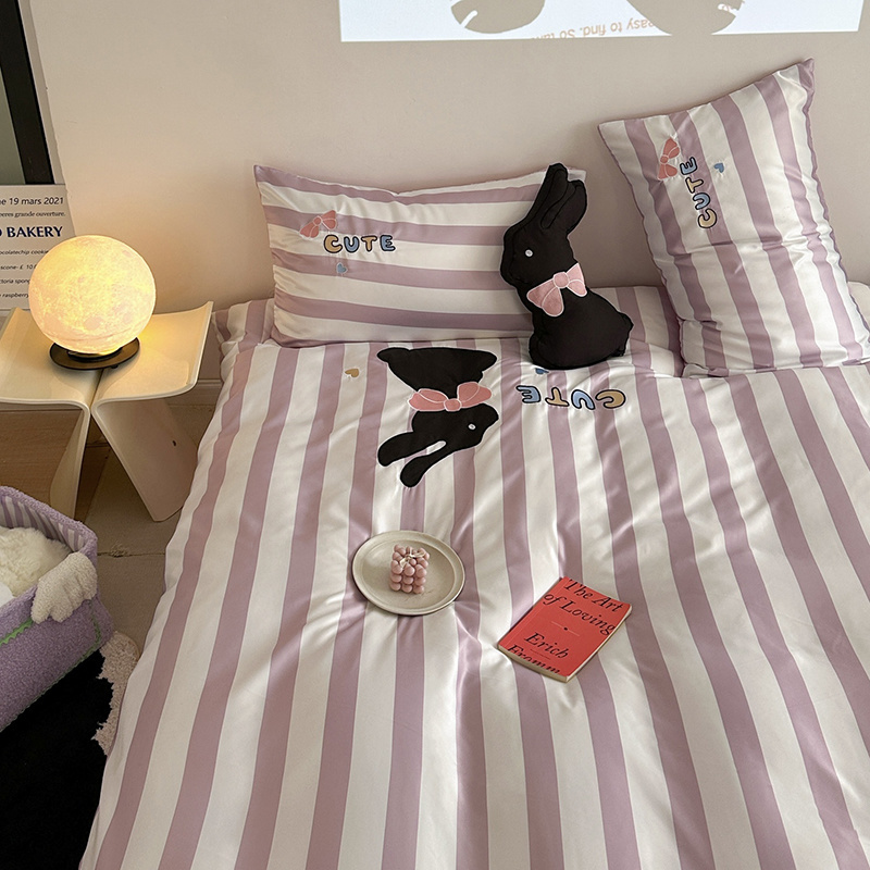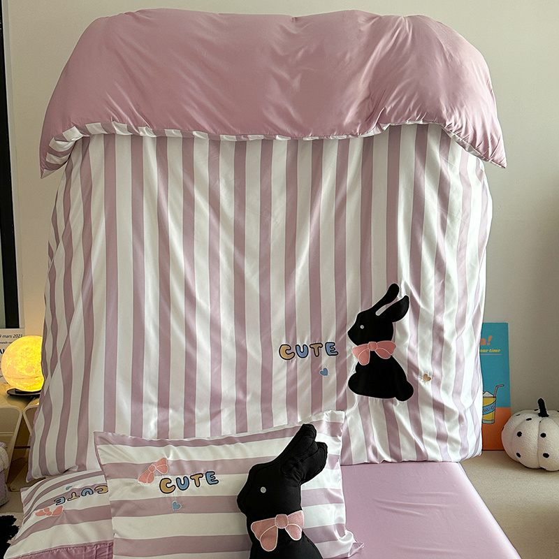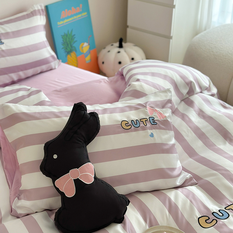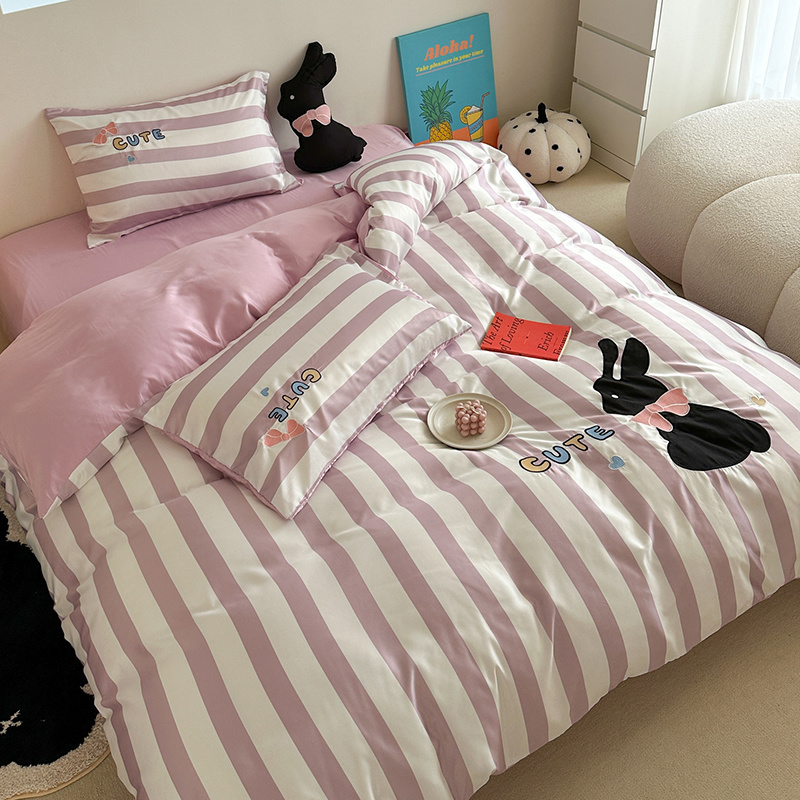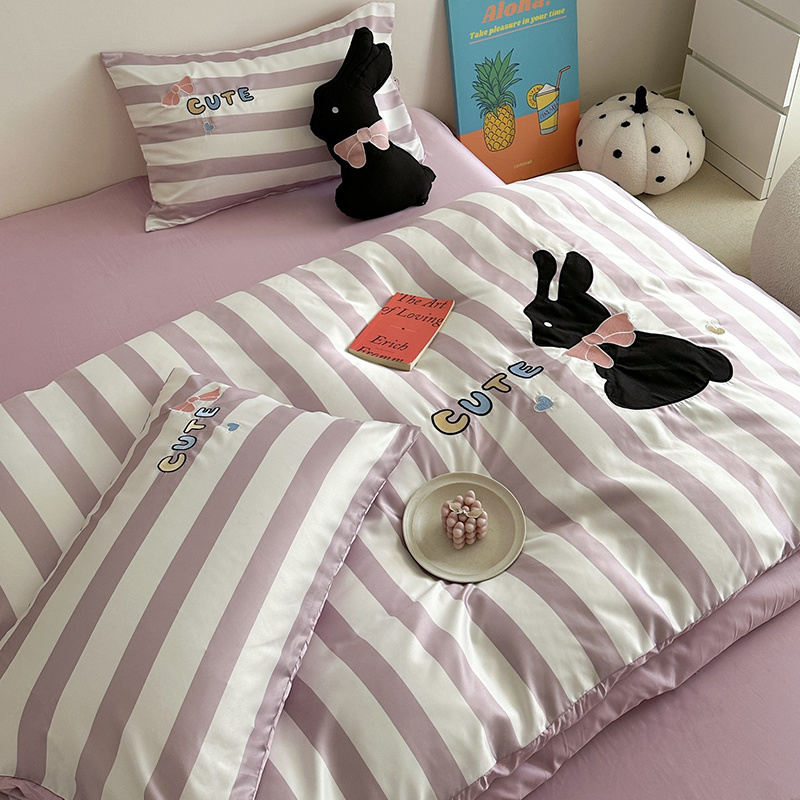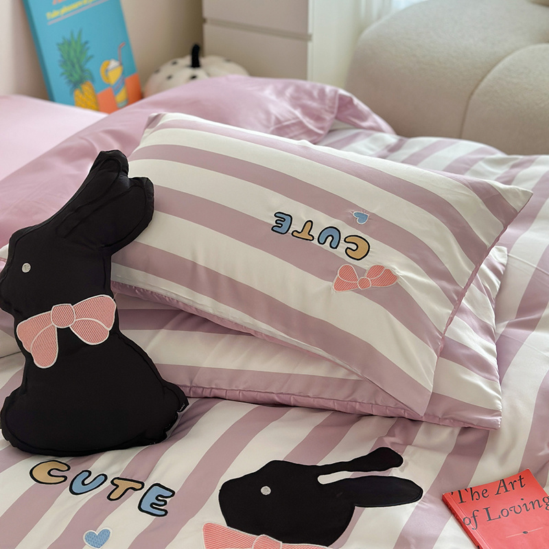优悦2024新款冰丝卡通贴布绣四件套 小黑兔