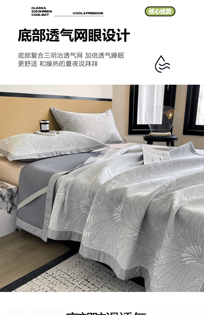 商品名称:倾慕 2024新款提花凉感凉席 床席款清风雅韵-灰
