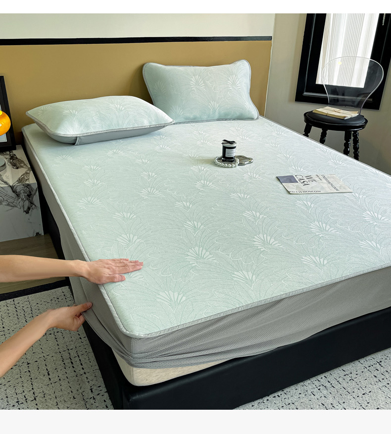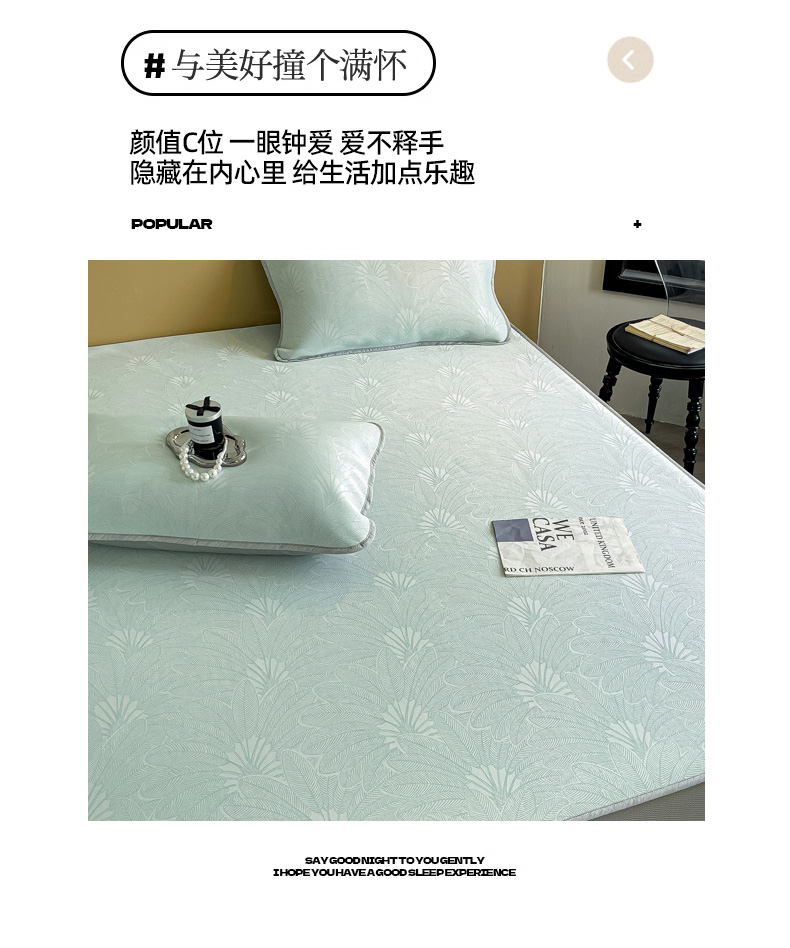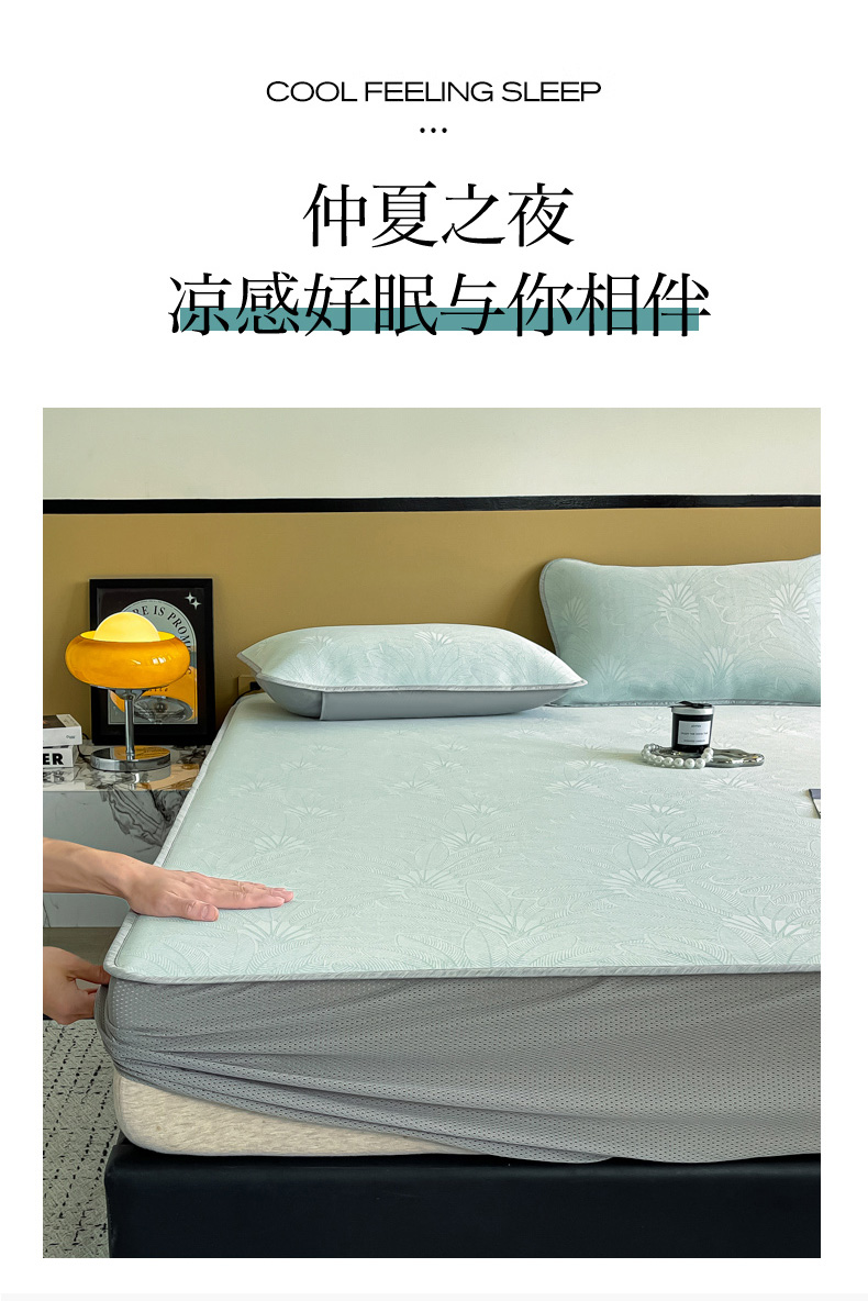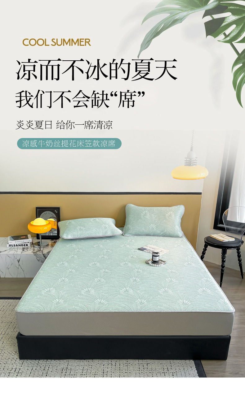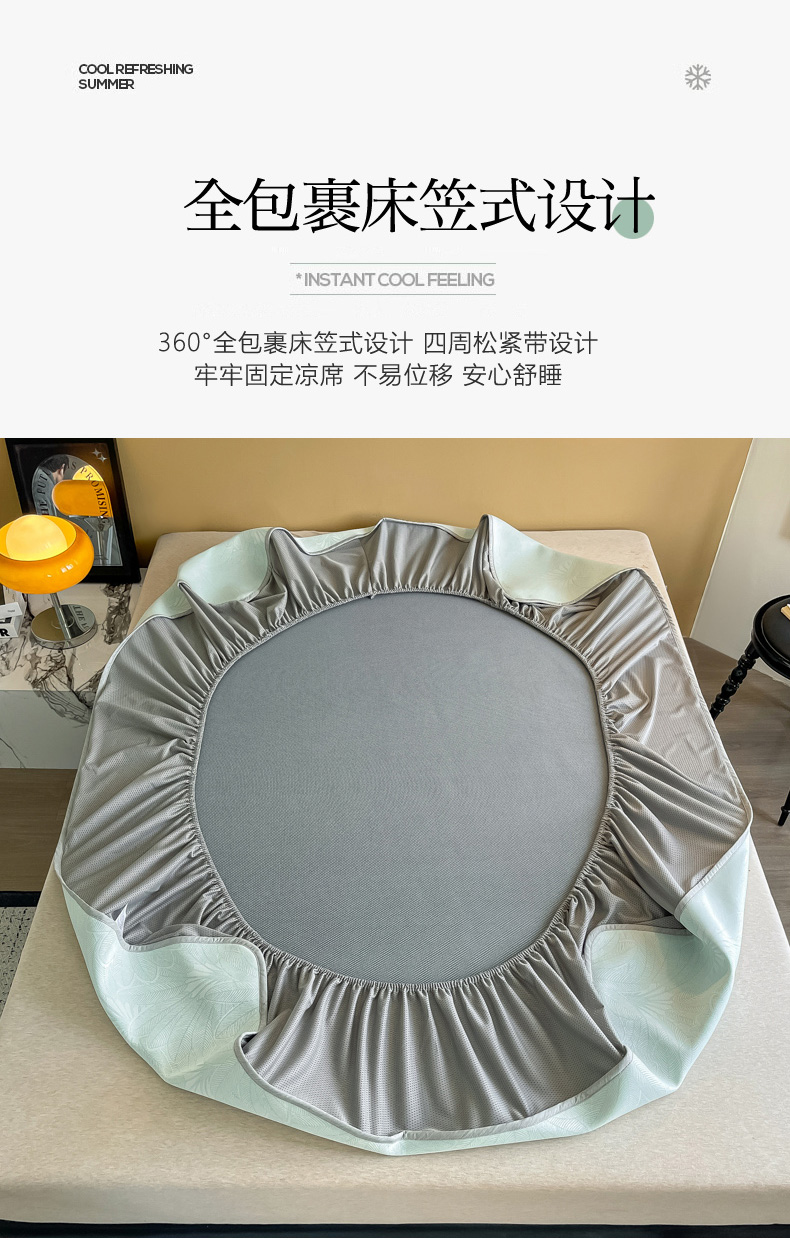 商品名称:倾慕 2024新款提花凉感凉席 床笠款清风雅韵-绿