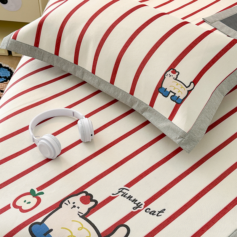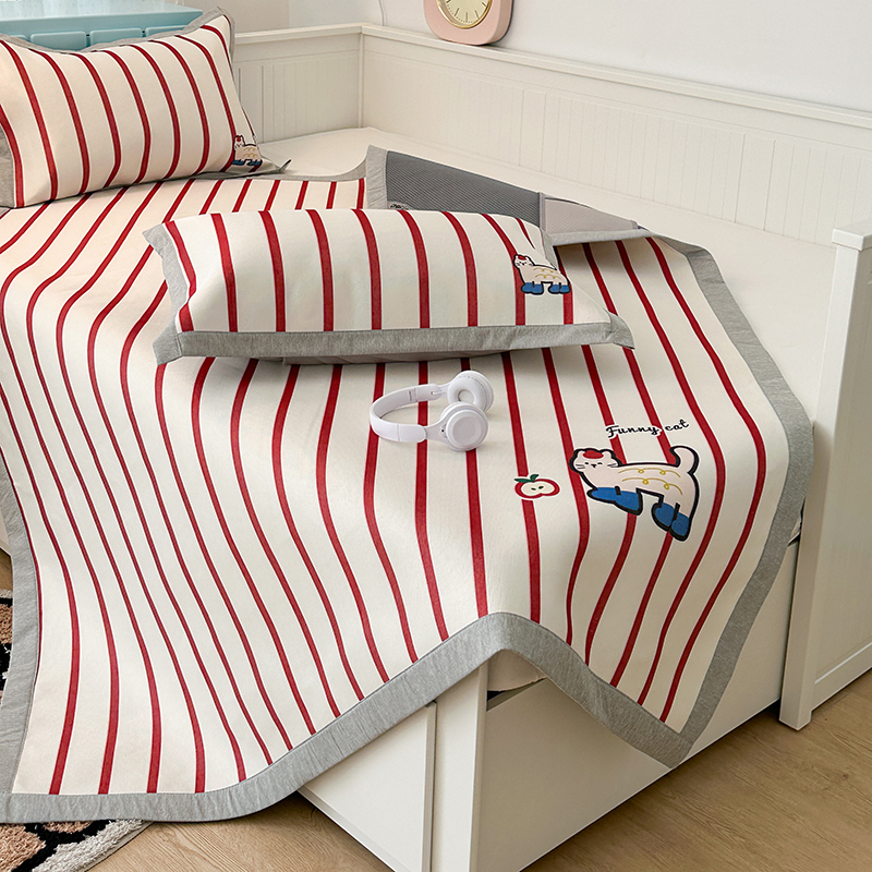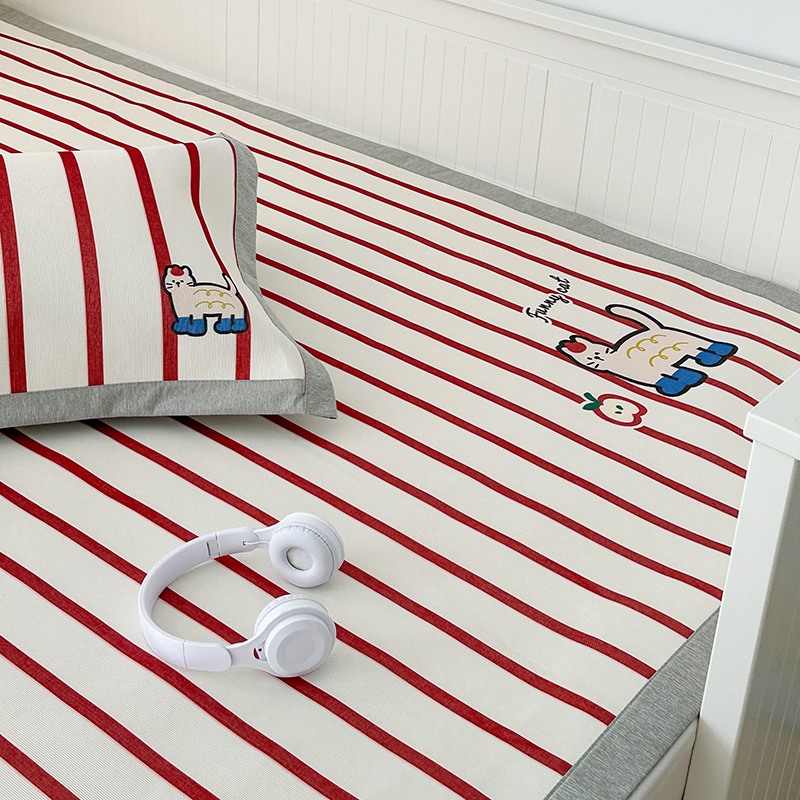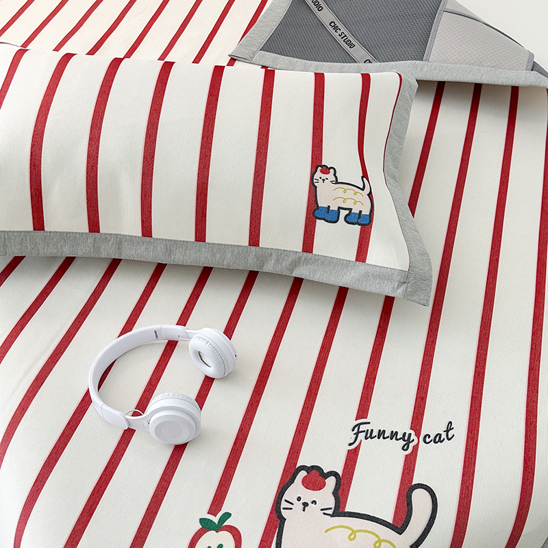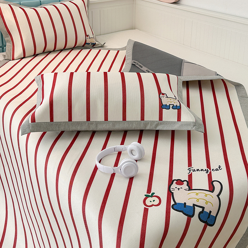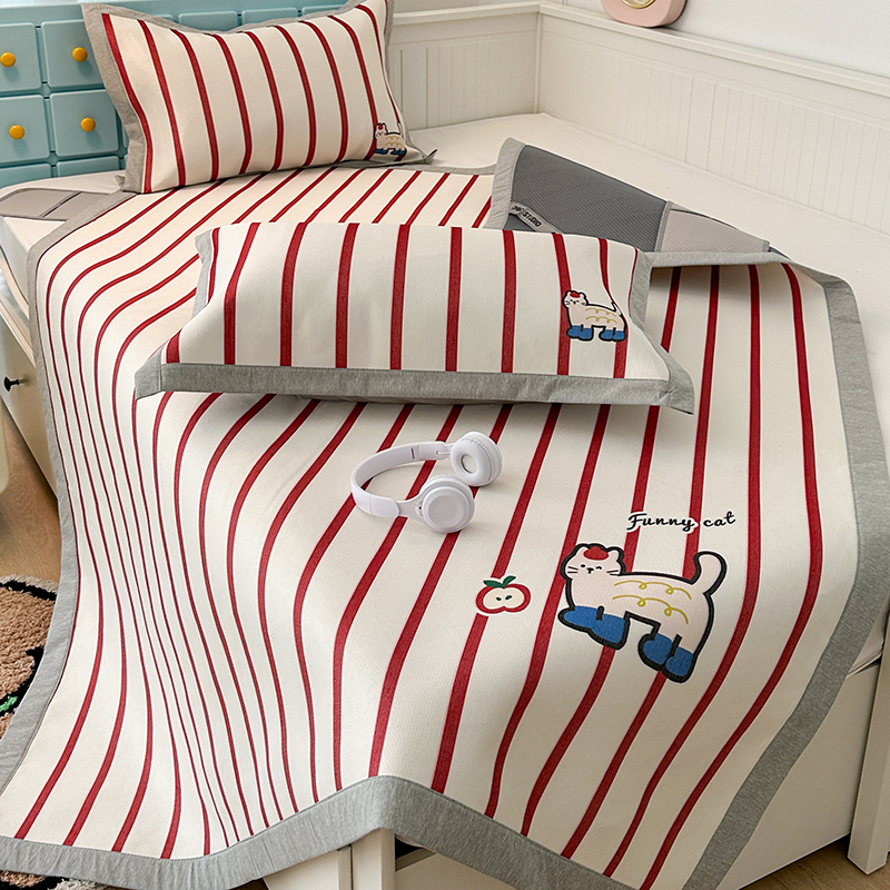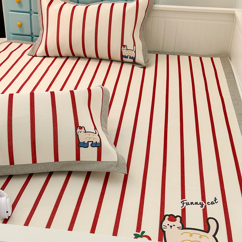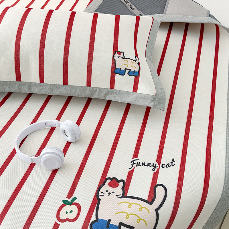 商品名称:昔可家纺 2024新款大版数码印花养生冰藤席 苹果猫咪