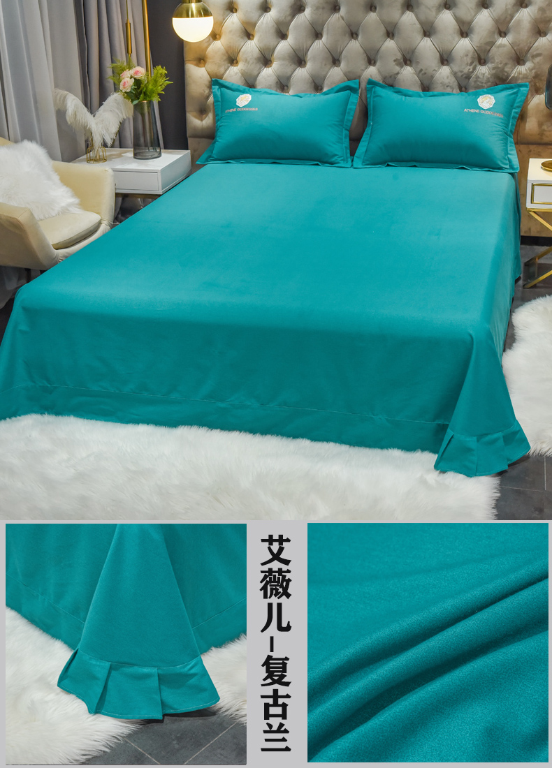 商品名称:艾迪尚家纺 2025新款纯色生态磨毛绣花单床单 艾薇儿-复古兰