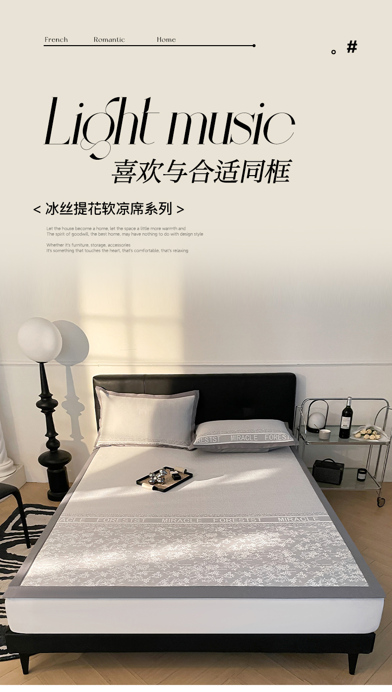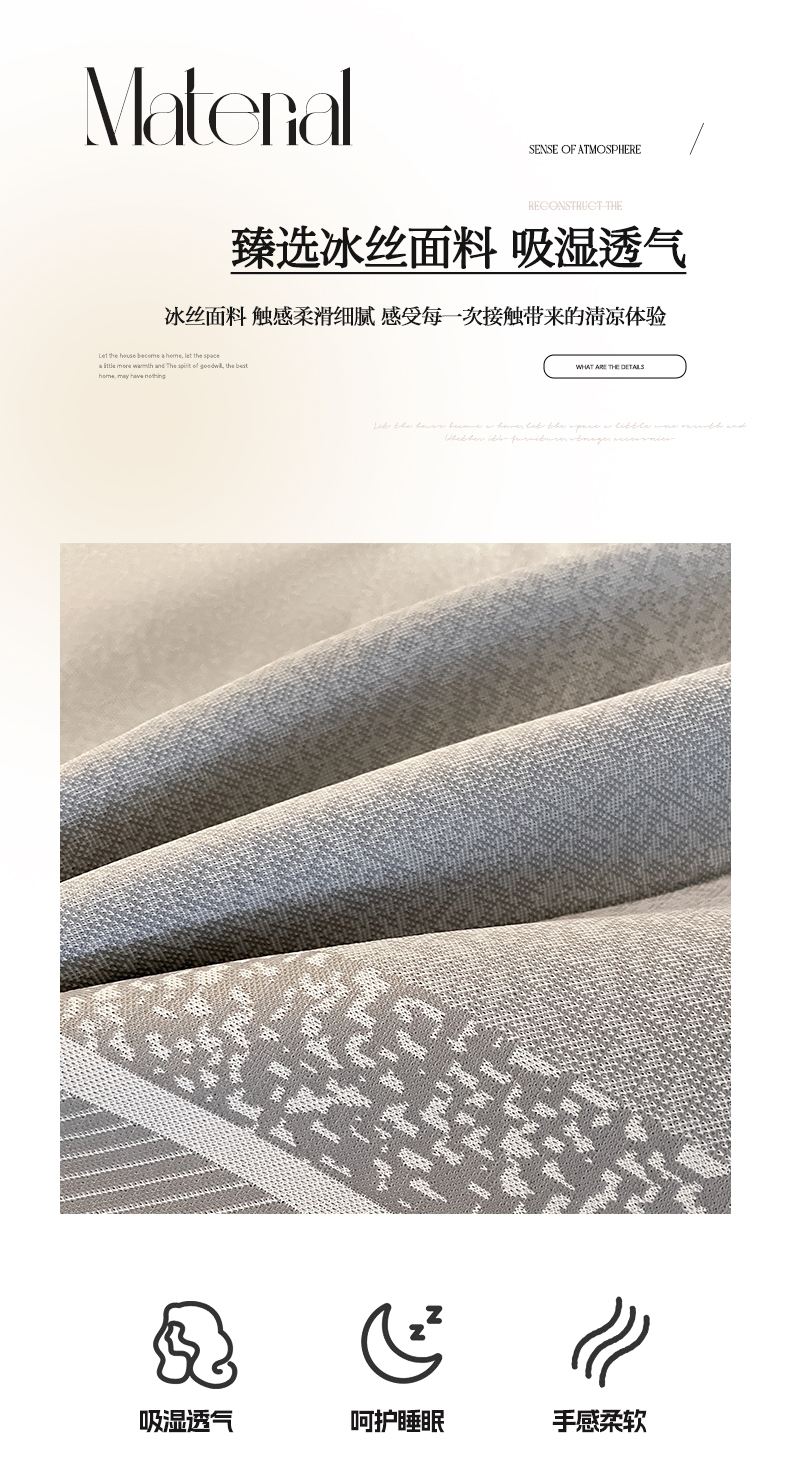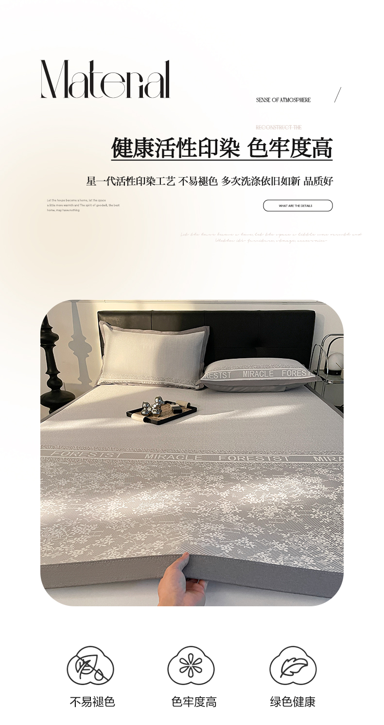 商品名称:凯罗 2024新款凉感提花冰丝床席三件套 简约生活--灰