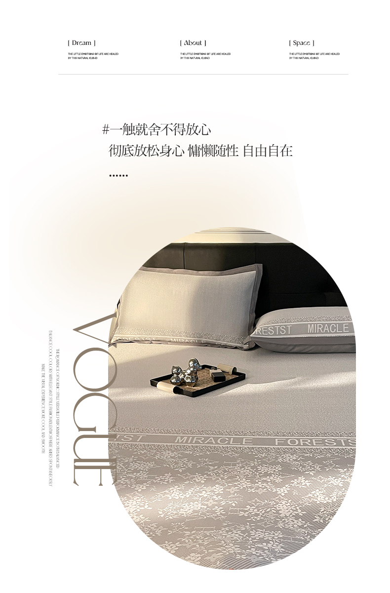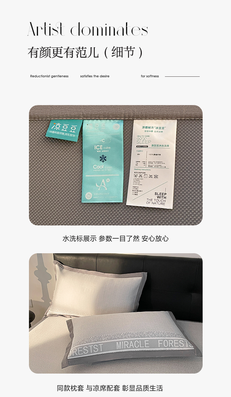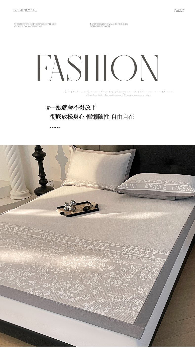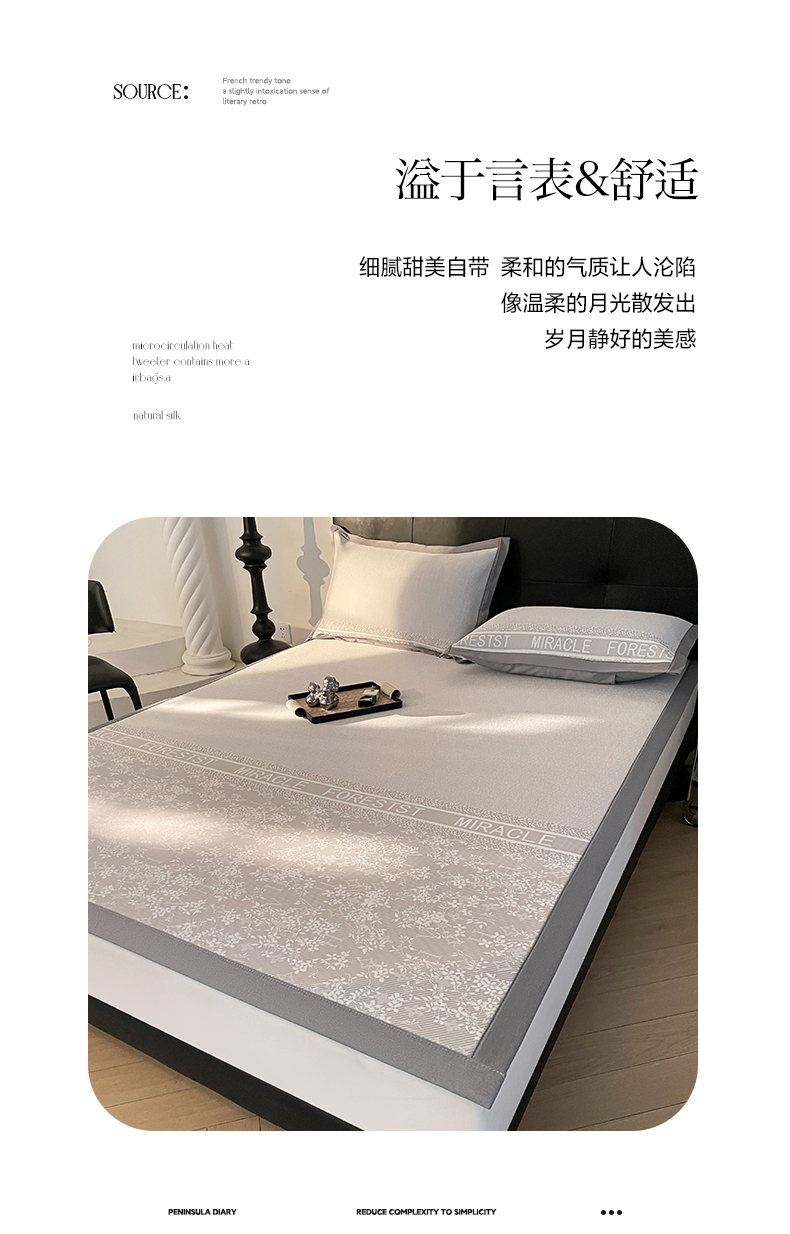 商品名称:凯罗 2024新款凉感提花冰丝床席三件套 简约生活--灰