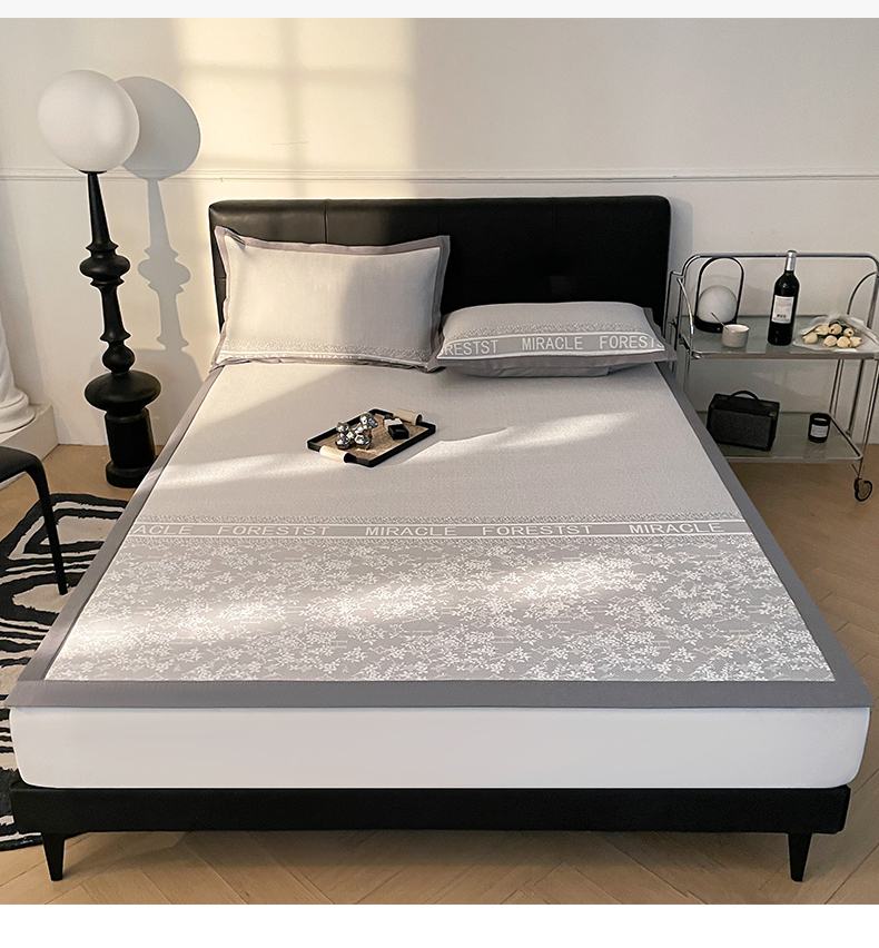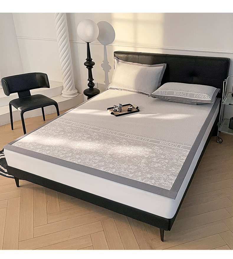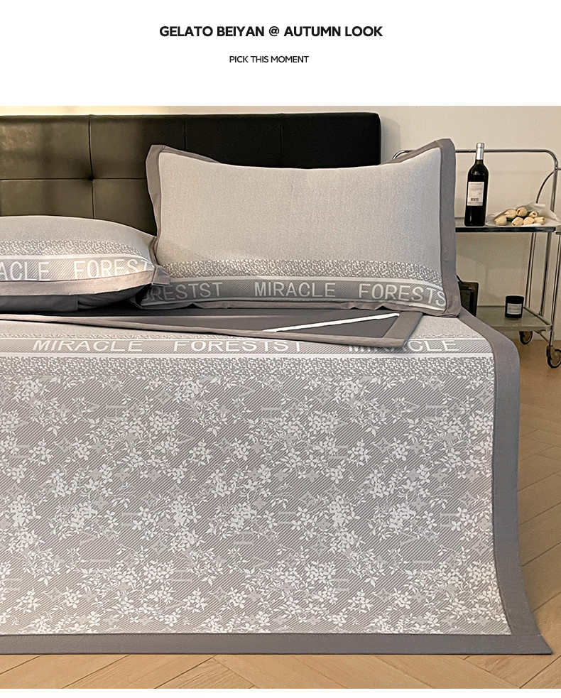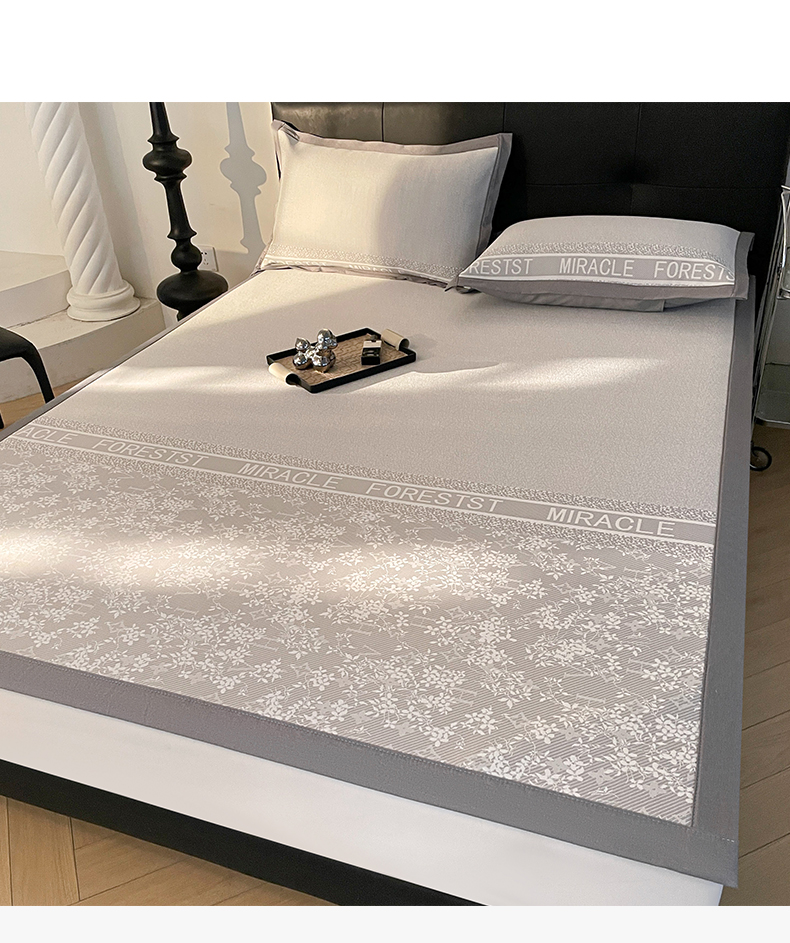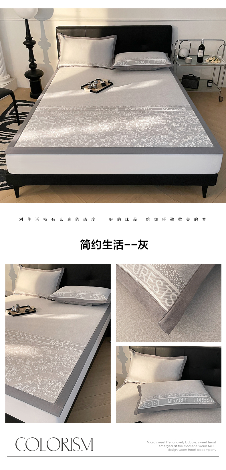 凯罗 2024新款凉感提花冰丝床席三件套 简约生活--灰