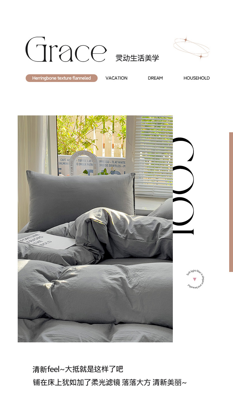 森璐家纺 2024新款1水洗棉被套纯色被套单被套素色被套 浅灰色