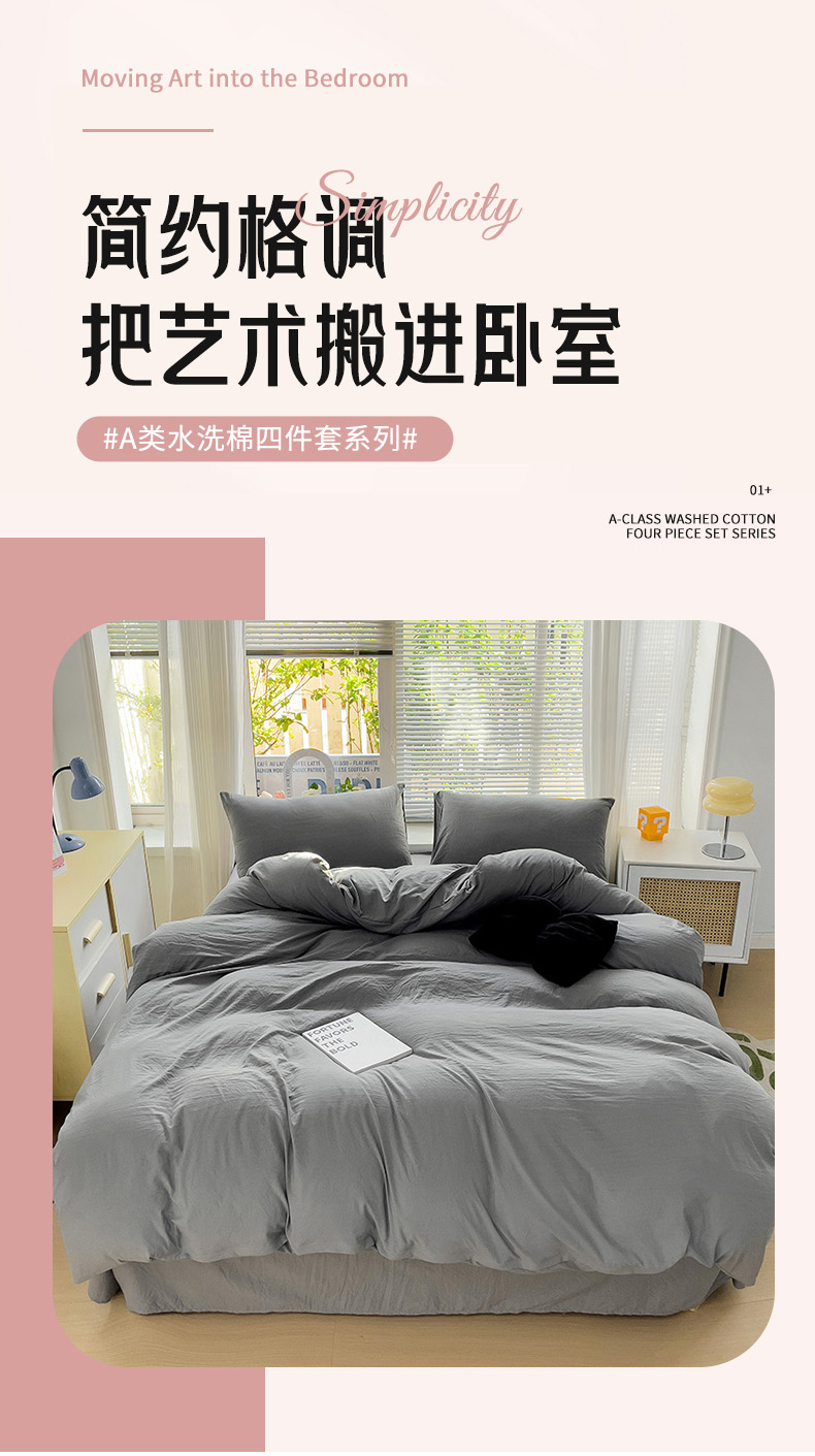 商品名称:森璐家纺 2024新款1水洗棉被套纯色被套单被套素色被套 浅灰色