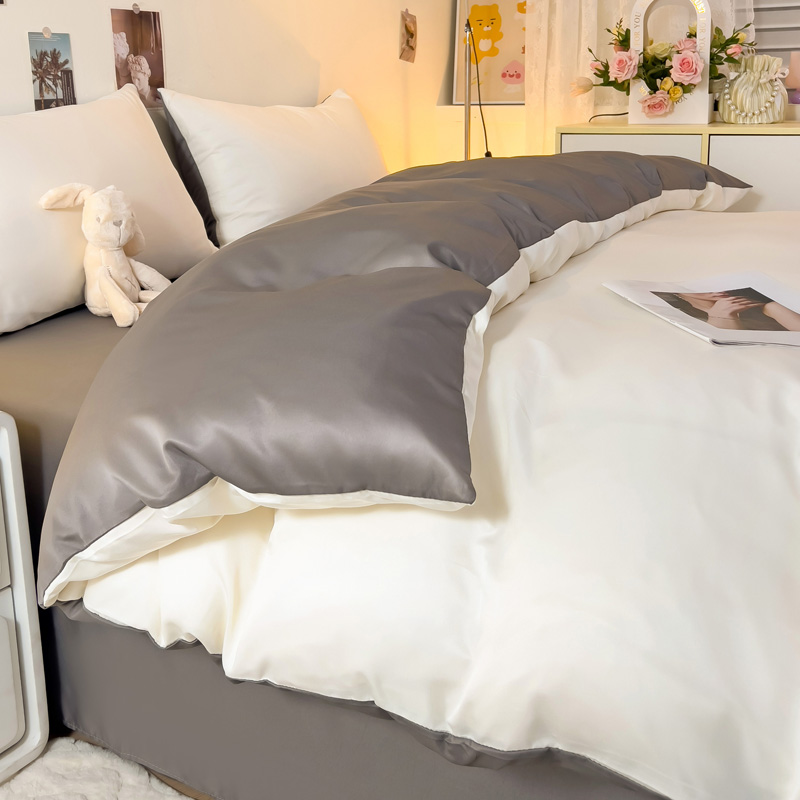 (总)老K 2024新款纯色轻奢水洗真丝四件套单品冰丝被套