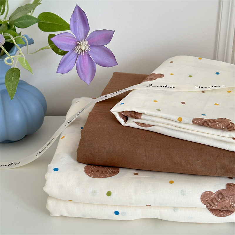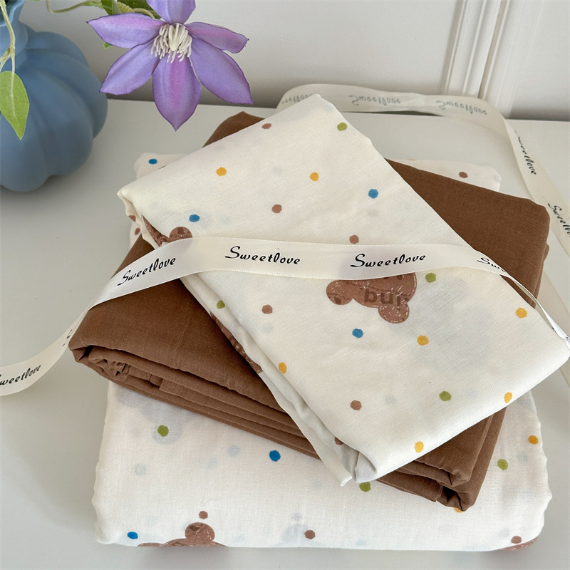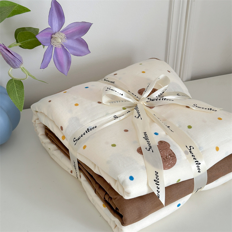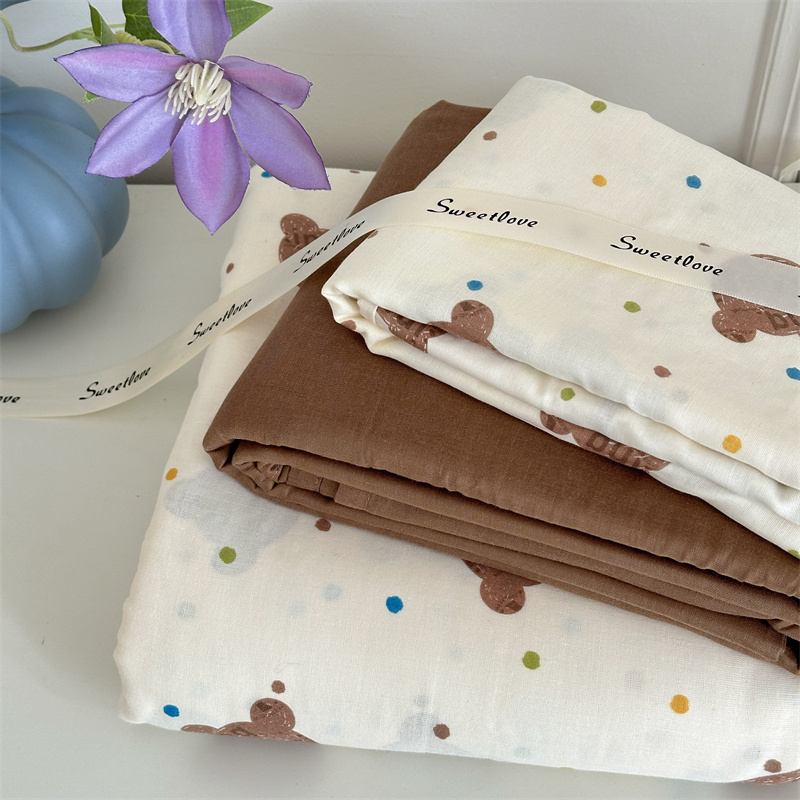 商品名称:曼之夏 2024新款全棉印花双层纱四件套熊仔