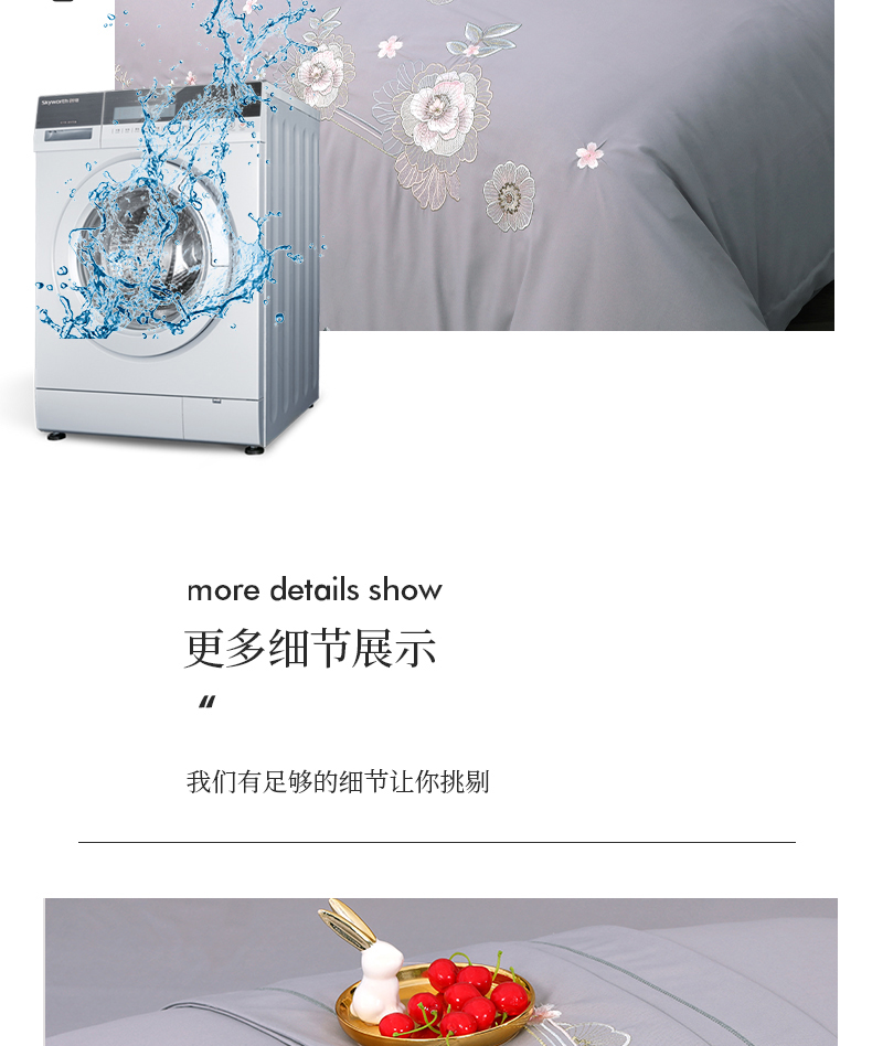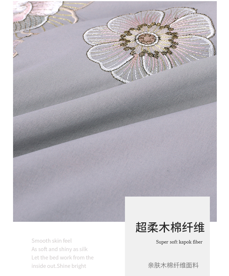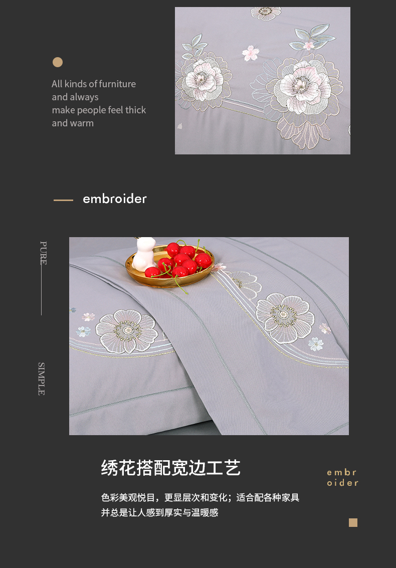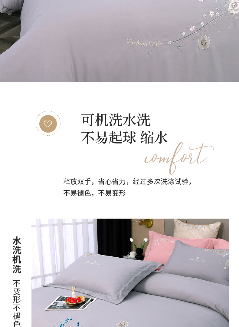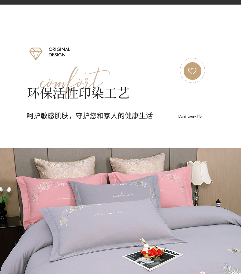 浩情国际 2026四季款斜纹木棉绣花克拉恋人系列四件套 克拉恋人-时尚灰