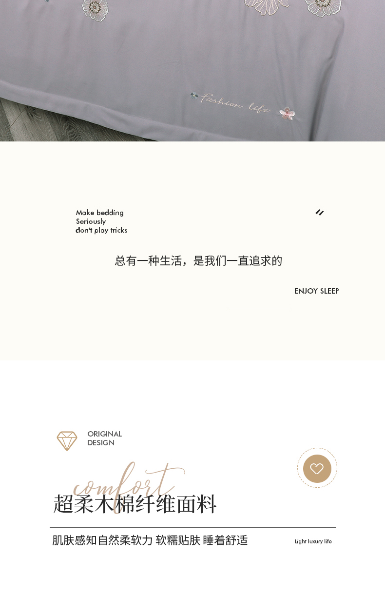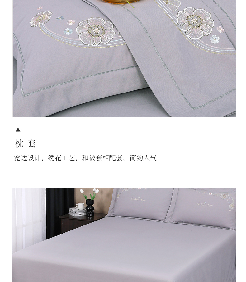 商品名称:浩情国际 2026四季款斜纹木棉绣花克拉恋人系列四件套 克拉恋人-时尚灰