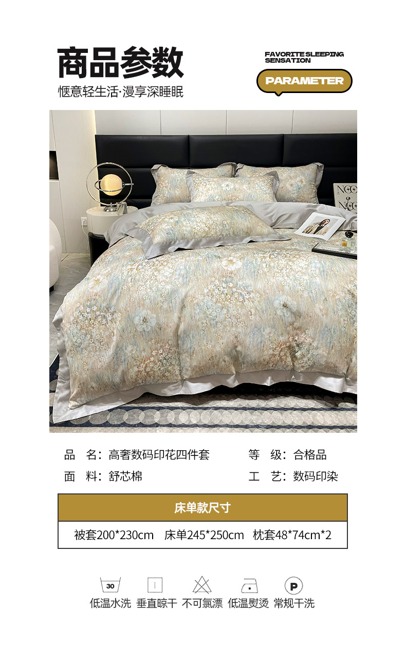 (总)大渔生活 2025新款舒芯棉高奢数码印花四件套,安羽,爵色,魅野,莫奈,幸屿