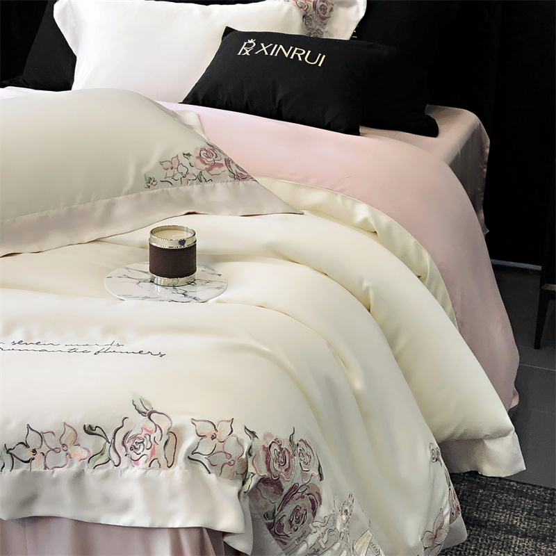 (总)馨蕊家居 2025新款80SLF奥地利兰精天丝四件套-芳华,天丝芳华-蔷薇粉,天丝芳华-婉若紫