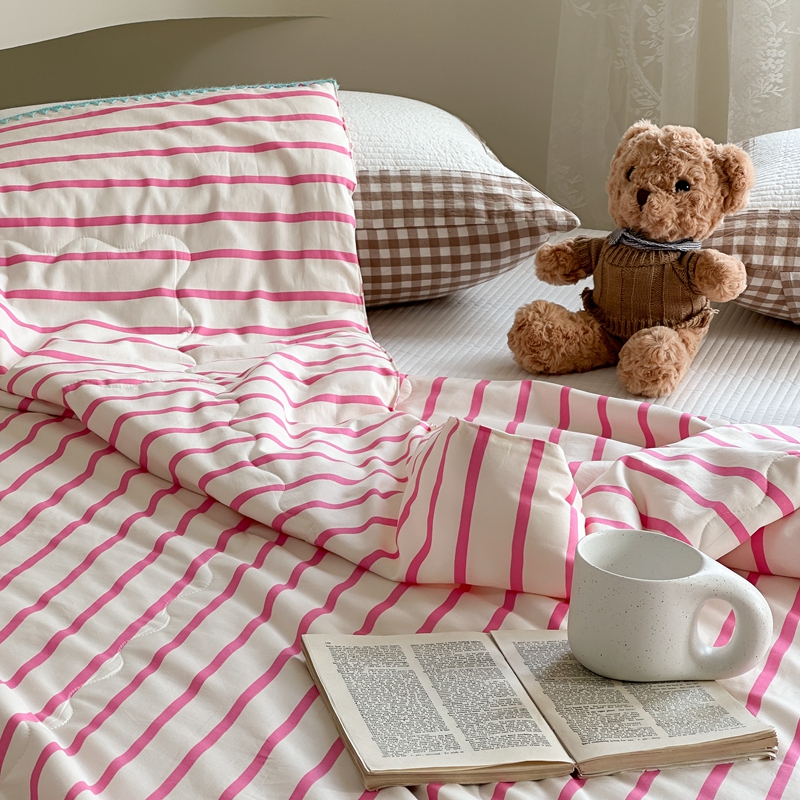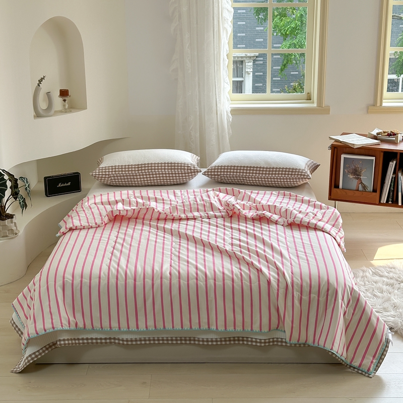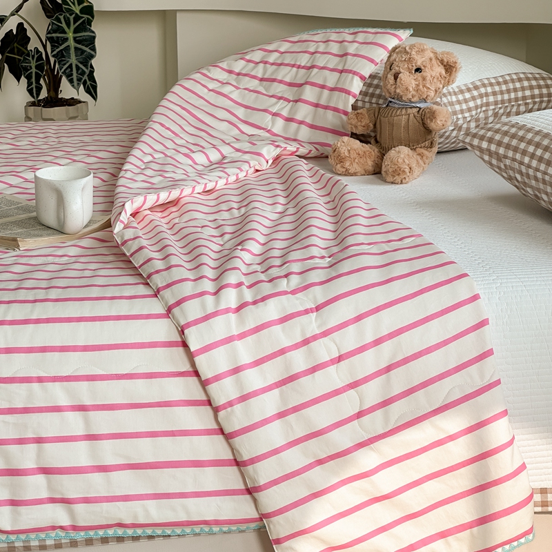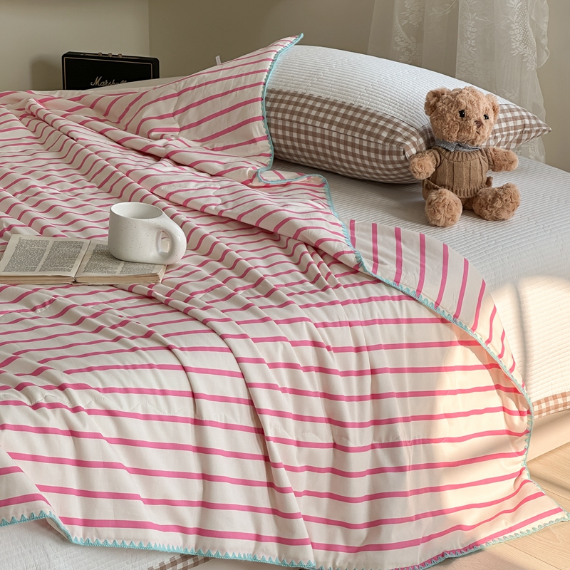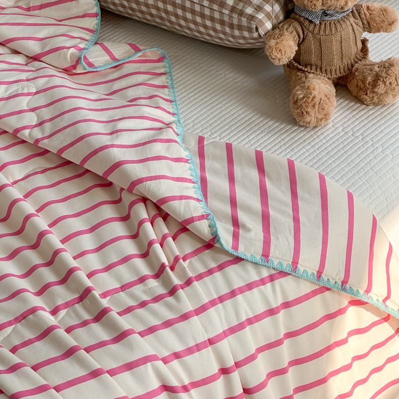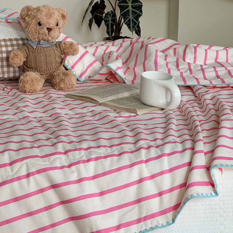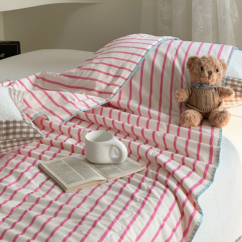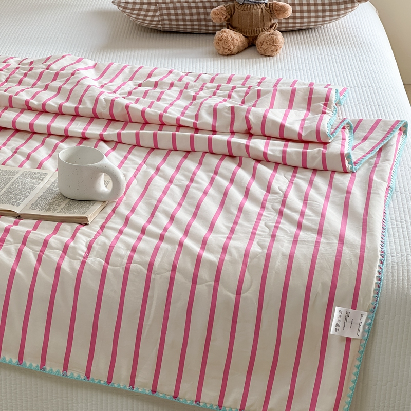 商品名称:洋铭区 2024新款贝壳边全棉印花夏被 玫红小条