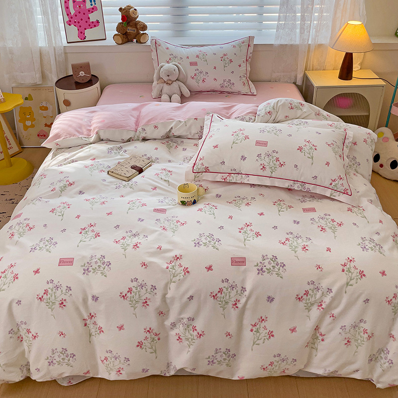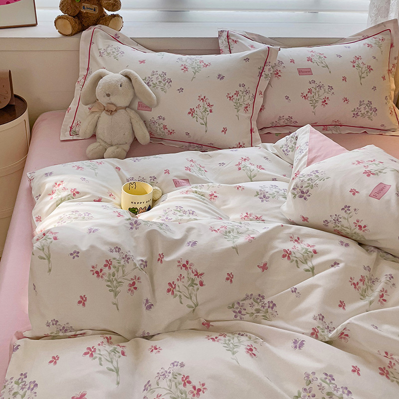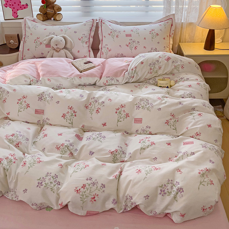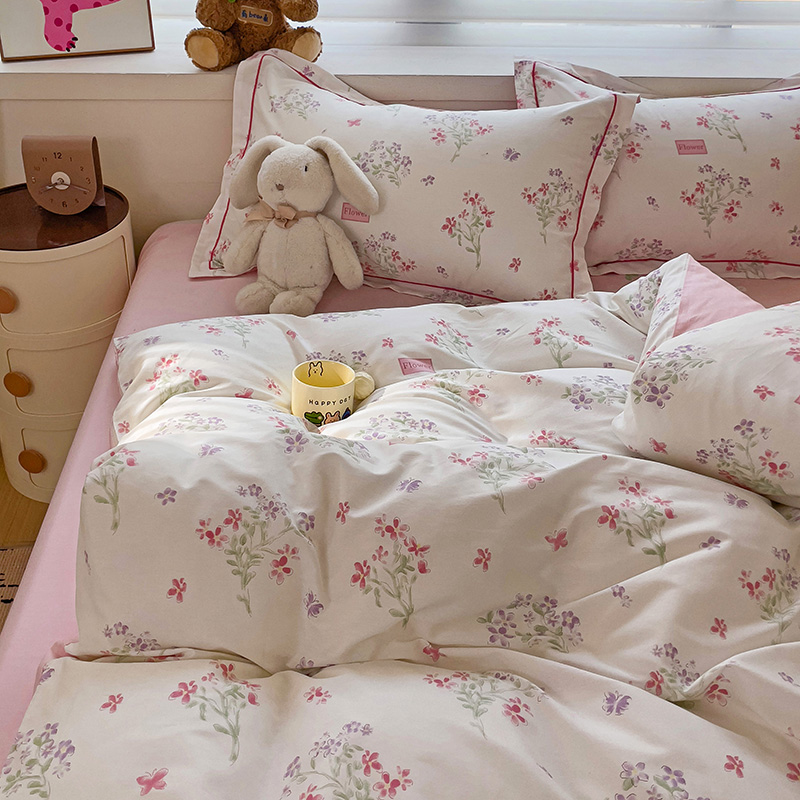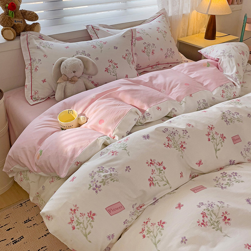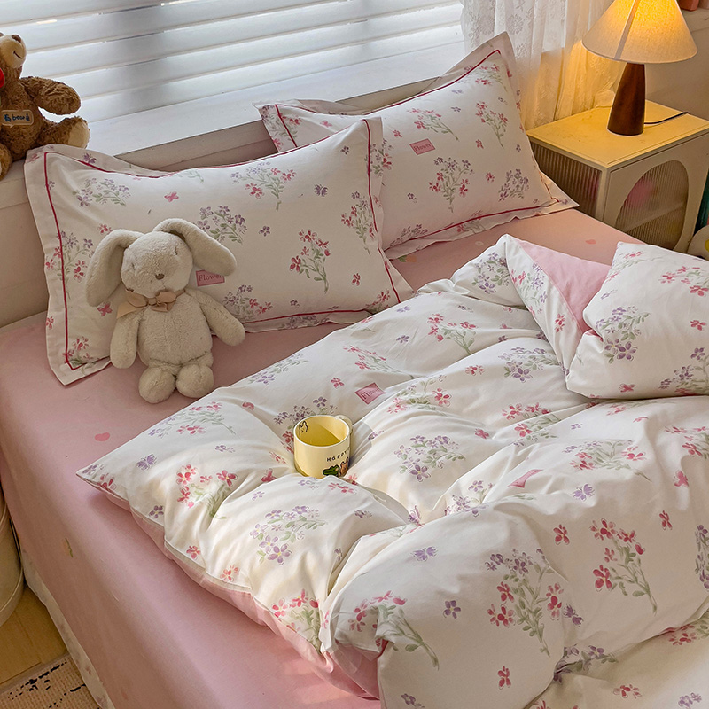 商品名称:乐童 2024新款直播爆款13070纯棉印花吊边款一字绣四件套-第七波 恋爱花束