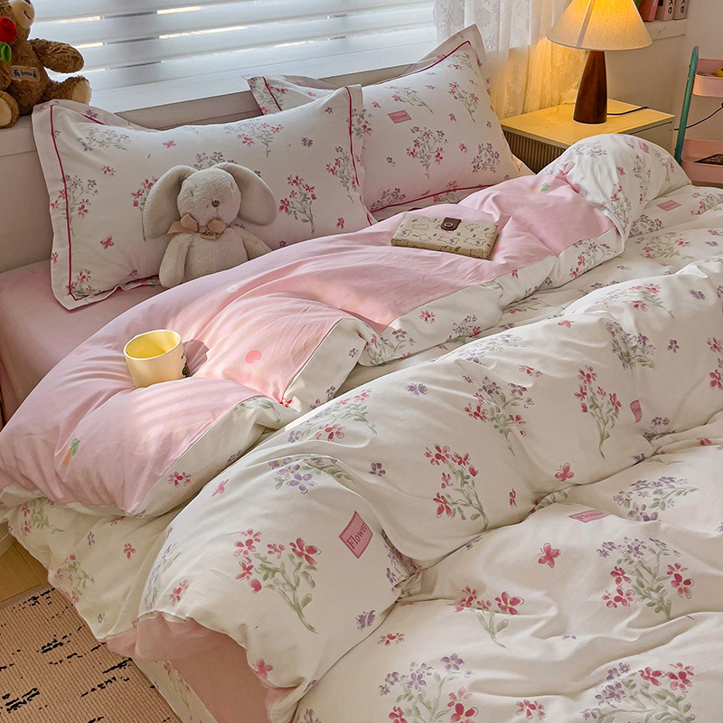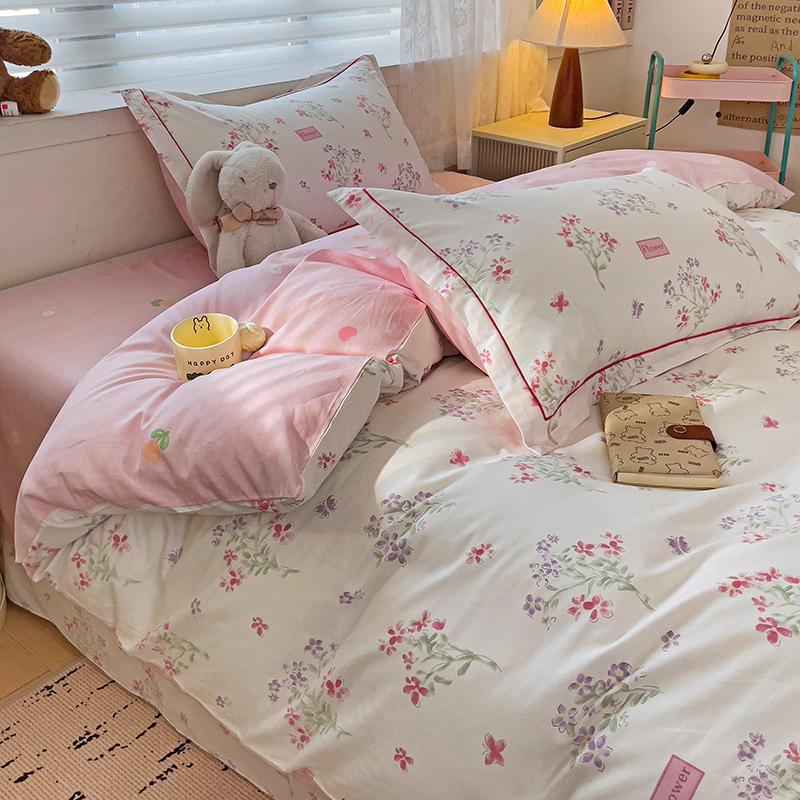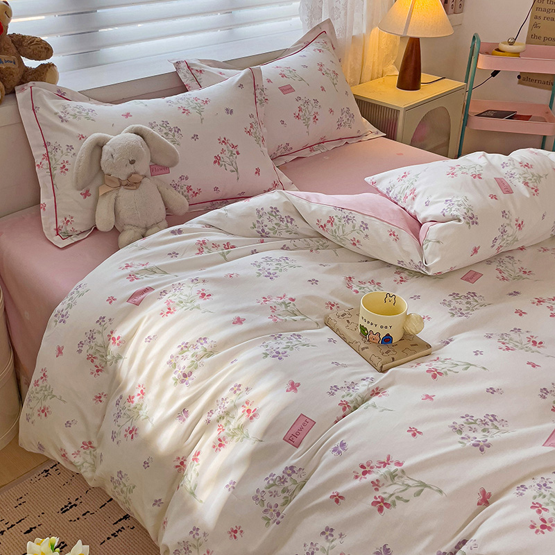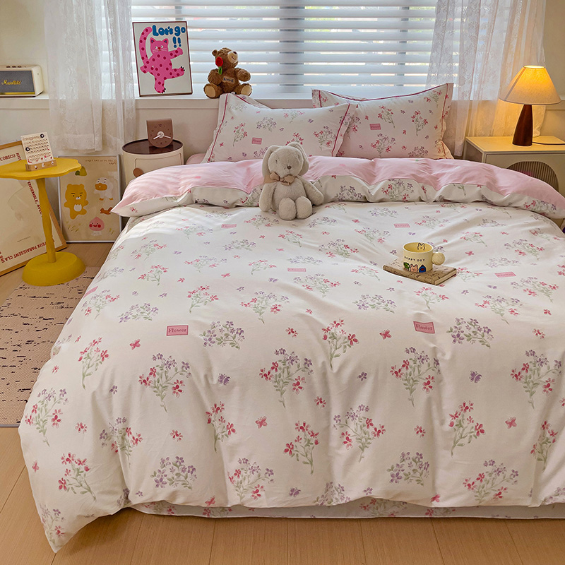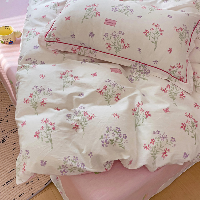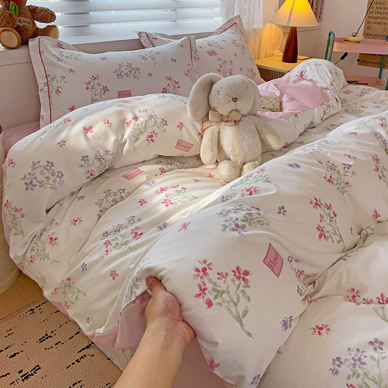 商品名称:乐童 2024新款直播爆款13070纯棉印花吊边款一字绣四件套-第七波 恋爱花束