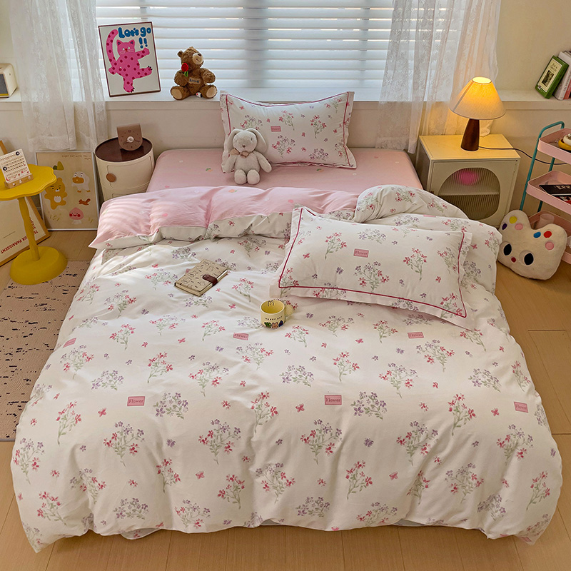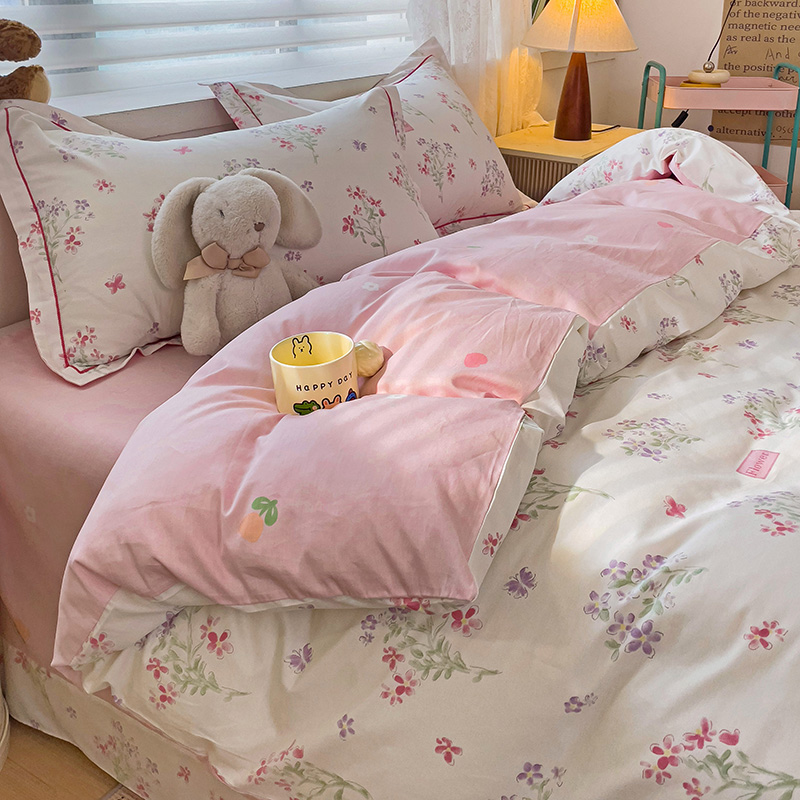 乐童 2024新款直播爆款13070纯棉印花吊边款一字绣四件套-第七波 恋爱花束