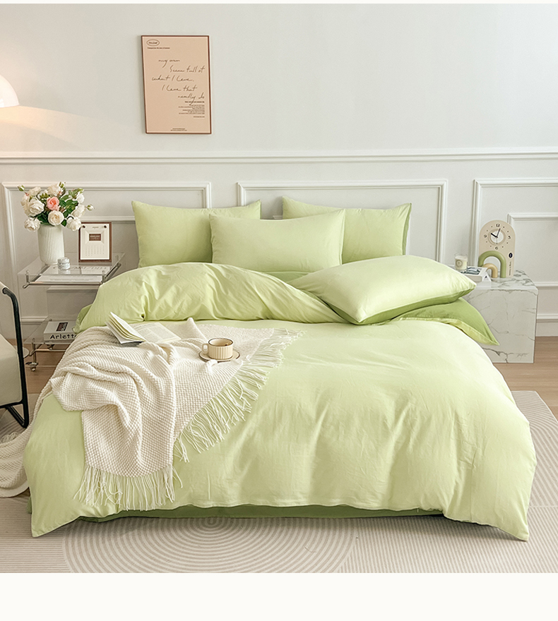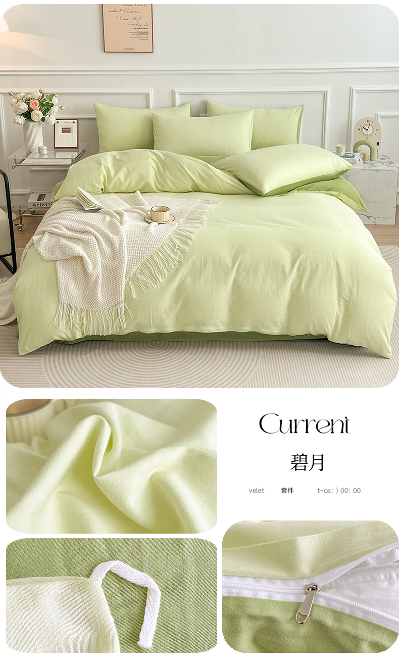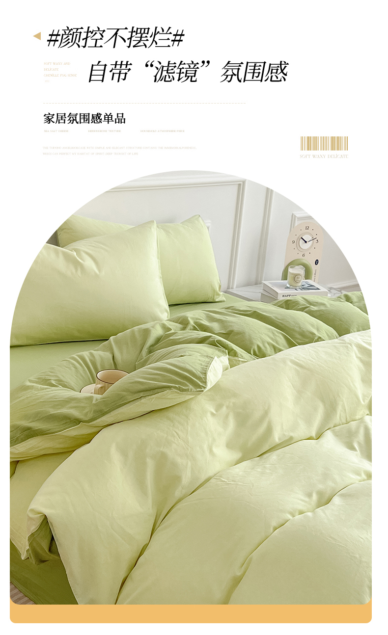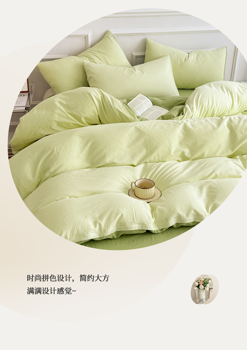 商品名称:多品家纺 2024新款日式无印风纯色双拼全棉单被套 碧月