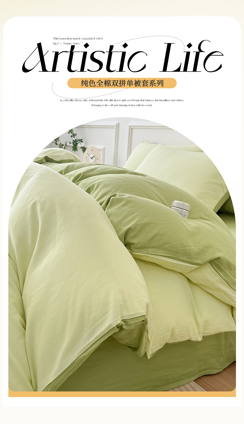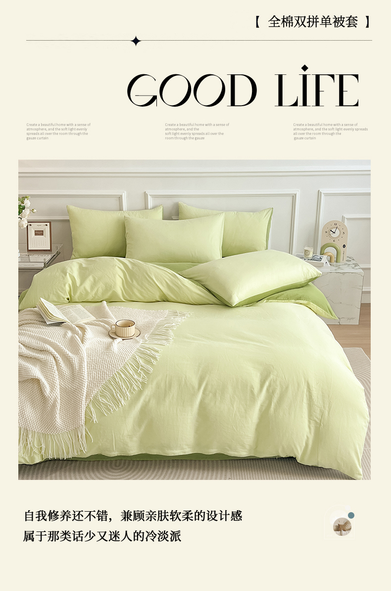 多品家纺 2024新款日式无印风纯色双拼全棉单被套 碧月