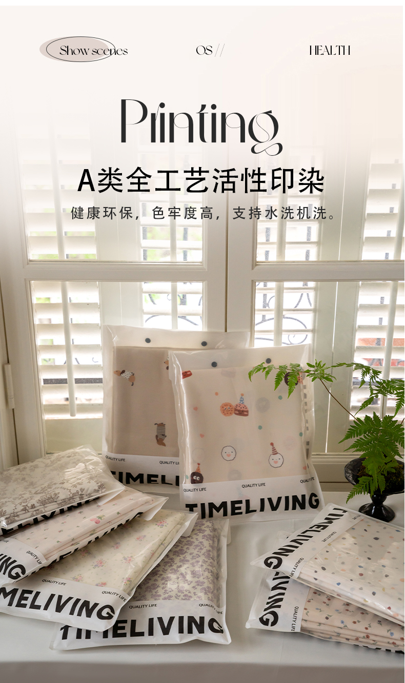 (总)时光里 2025新款230克全消光印花10色专版花型四件套,缤纷熊,狗狗乐园-蓝,花兔兔,花漾,开心腊肠,猫咪日记,木槿,森林兔,线团小咪,小雏菊