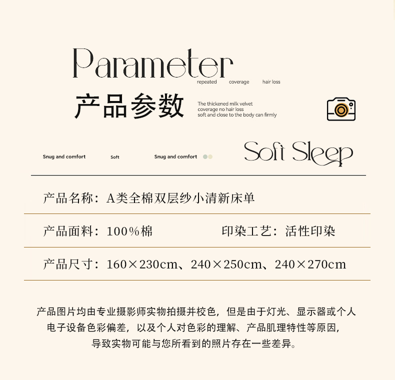商品名称:(总)时光里 2024新款A类全棉双层纱床单