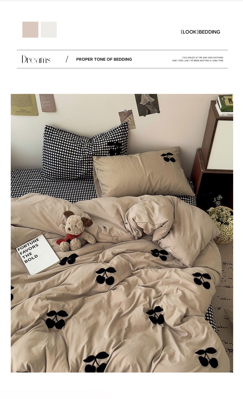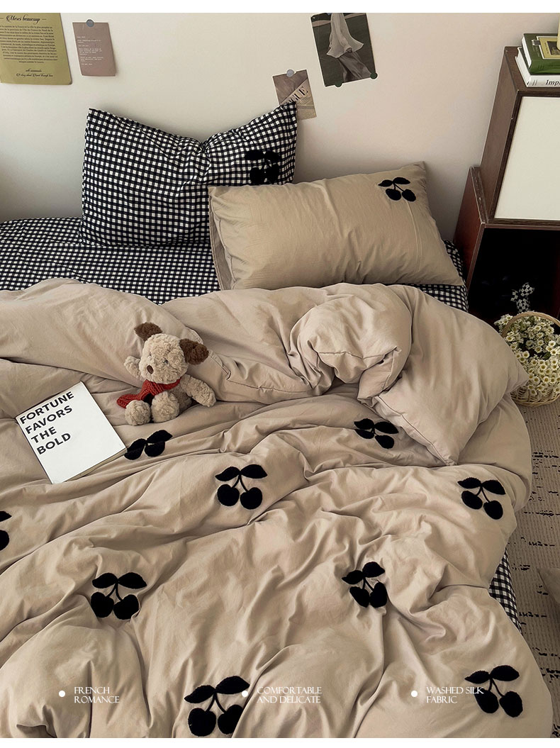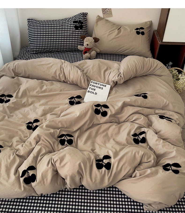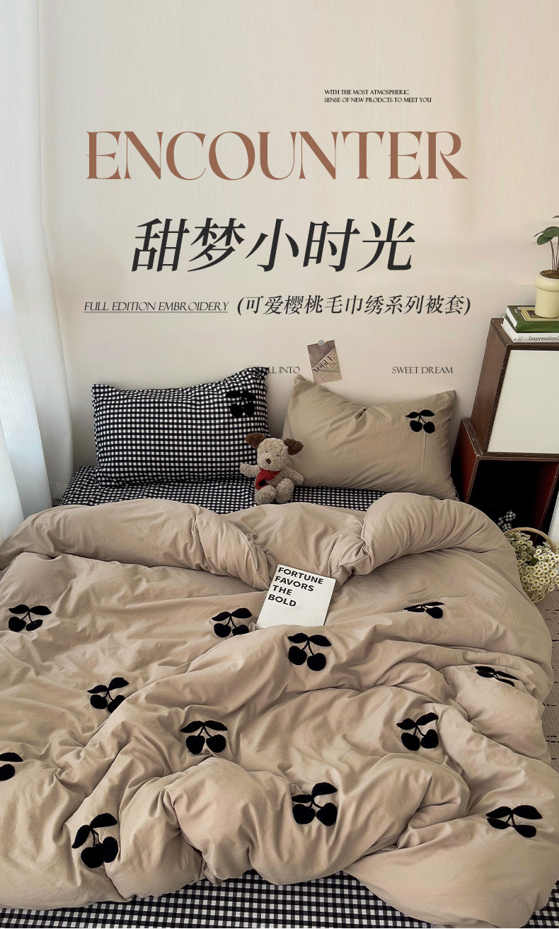 尤米 2024新款可爱樱桃系列水洗棉毛巾绣单被套 樱桃-奶咖格