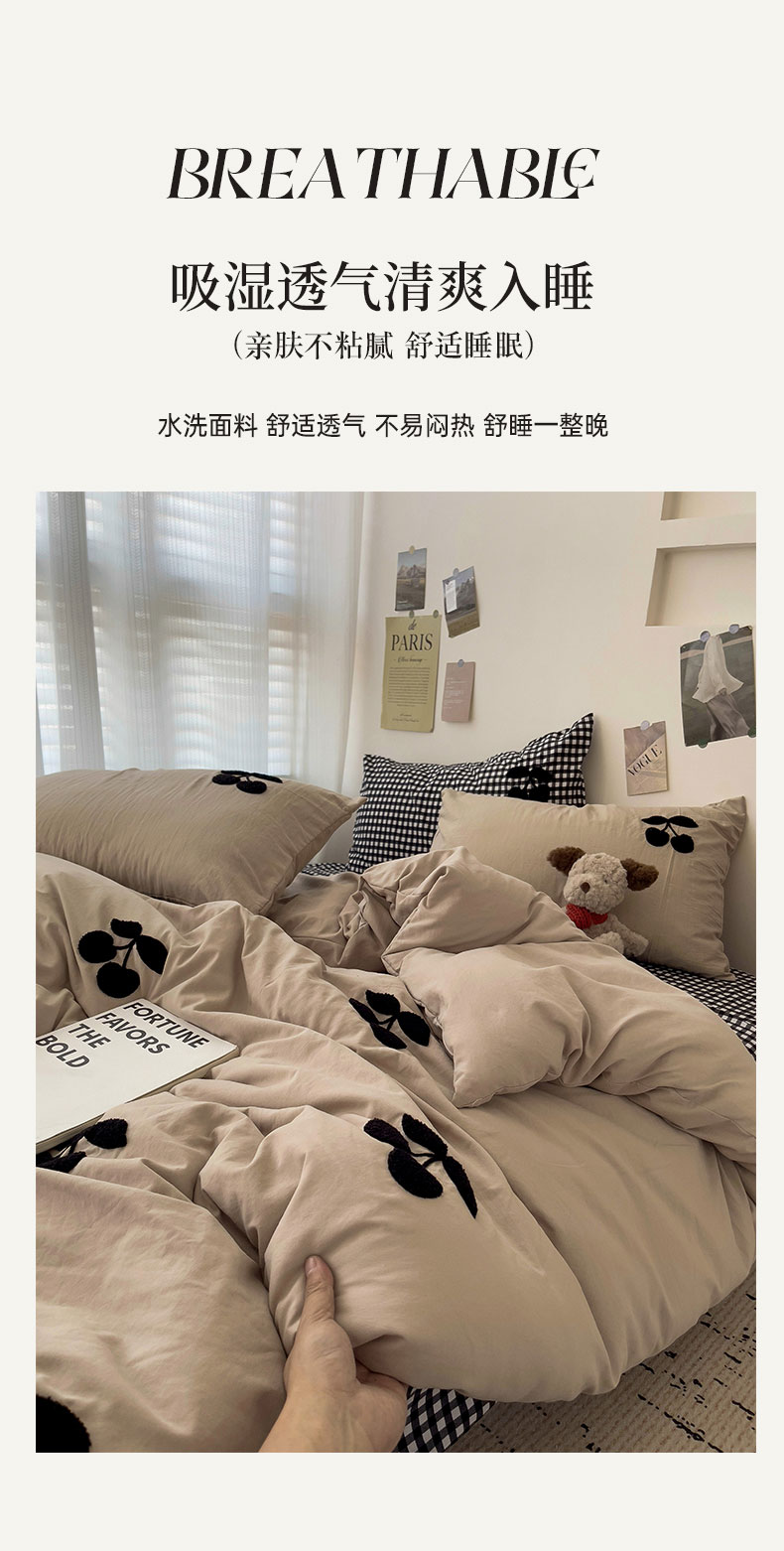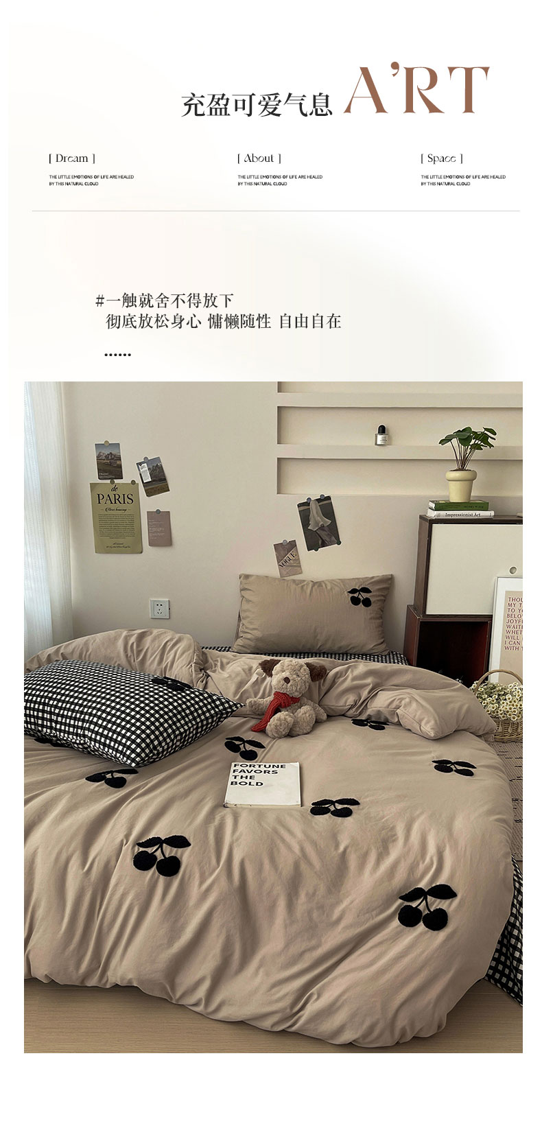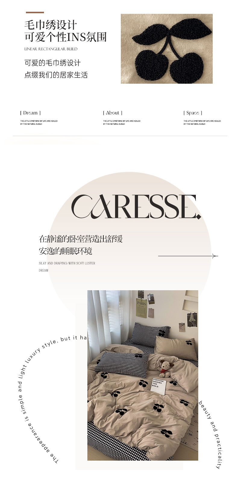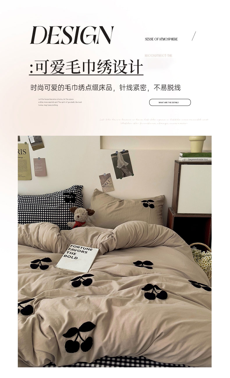 商品名称:尤米 2024新款可爱樱桃系列水洗棉毛巾绣单被套 樱桃-奶咖格
