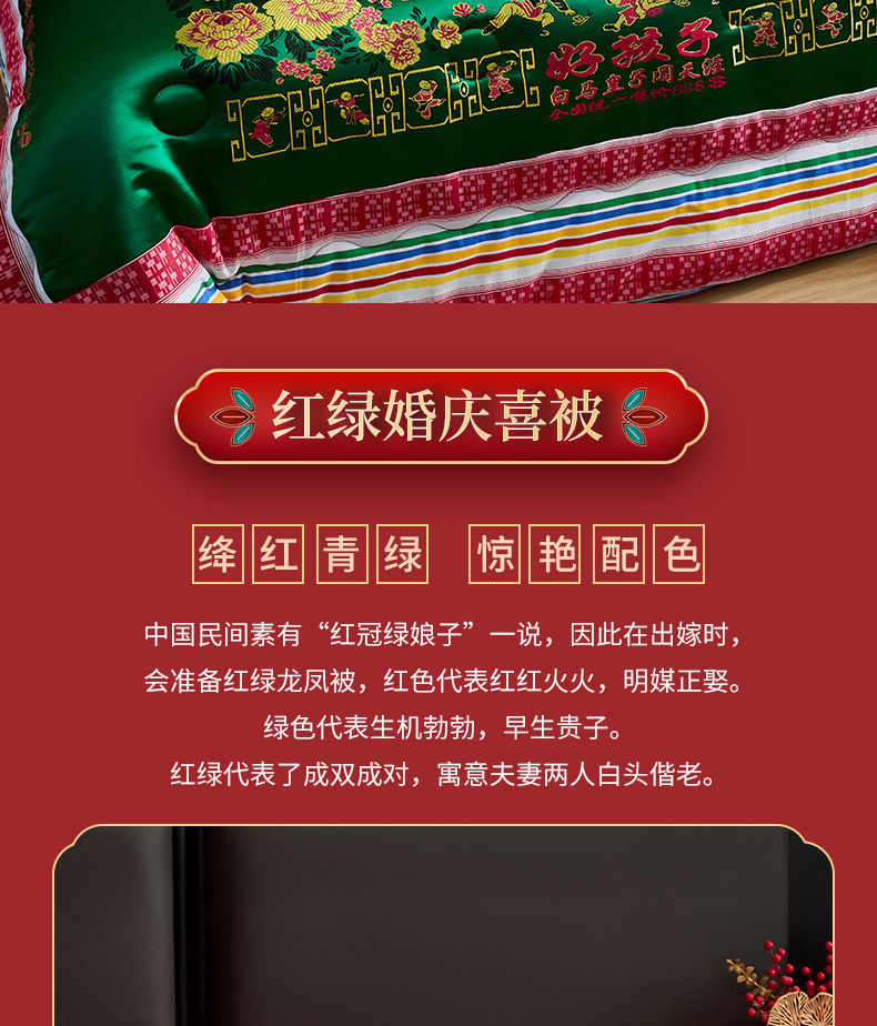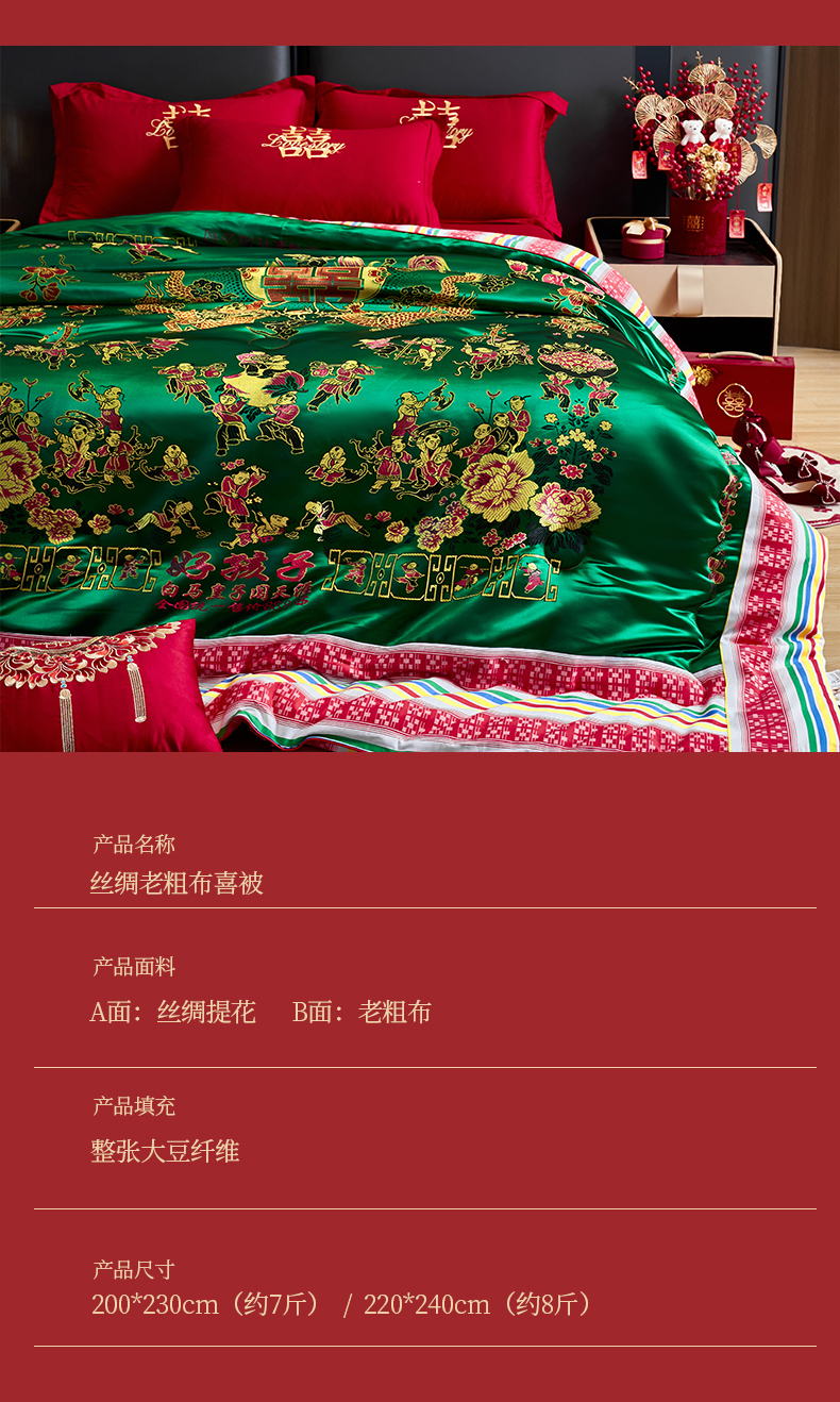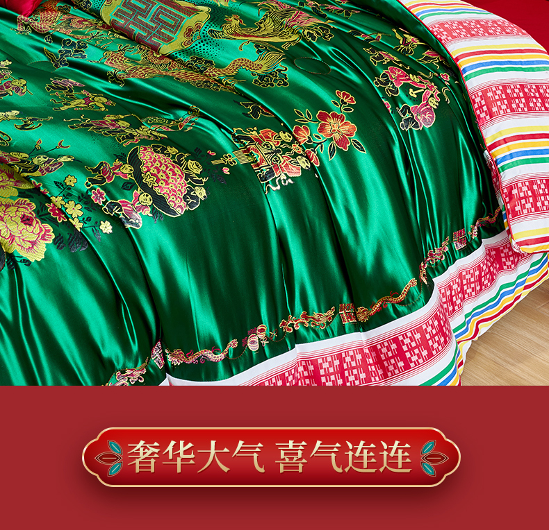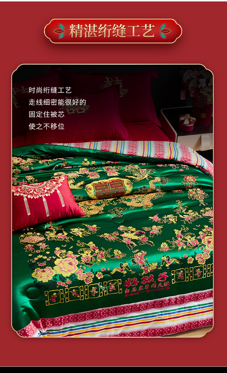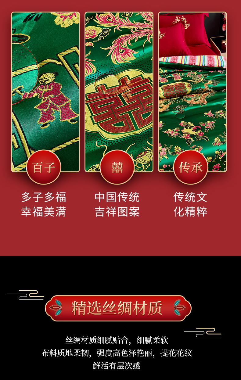 商品名称:玉雅家纺 2025新款婚庆绸缎被面结婚喜被龙凤百子单被套 多子多福-绿-被子