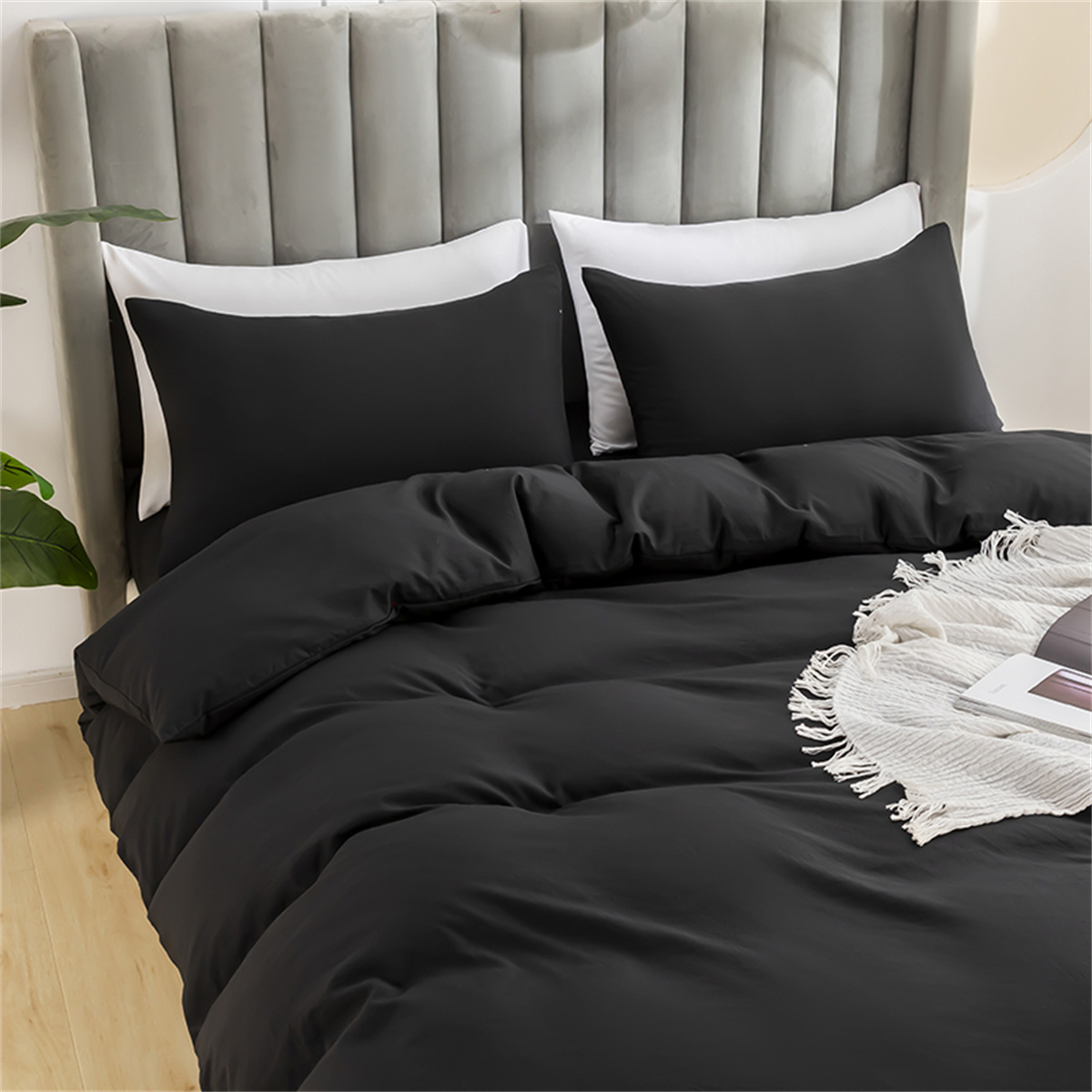 2025款跨境外贸纯色磨毛枕套被套套件三件套床上用品外贸专供可定制 浅灰
