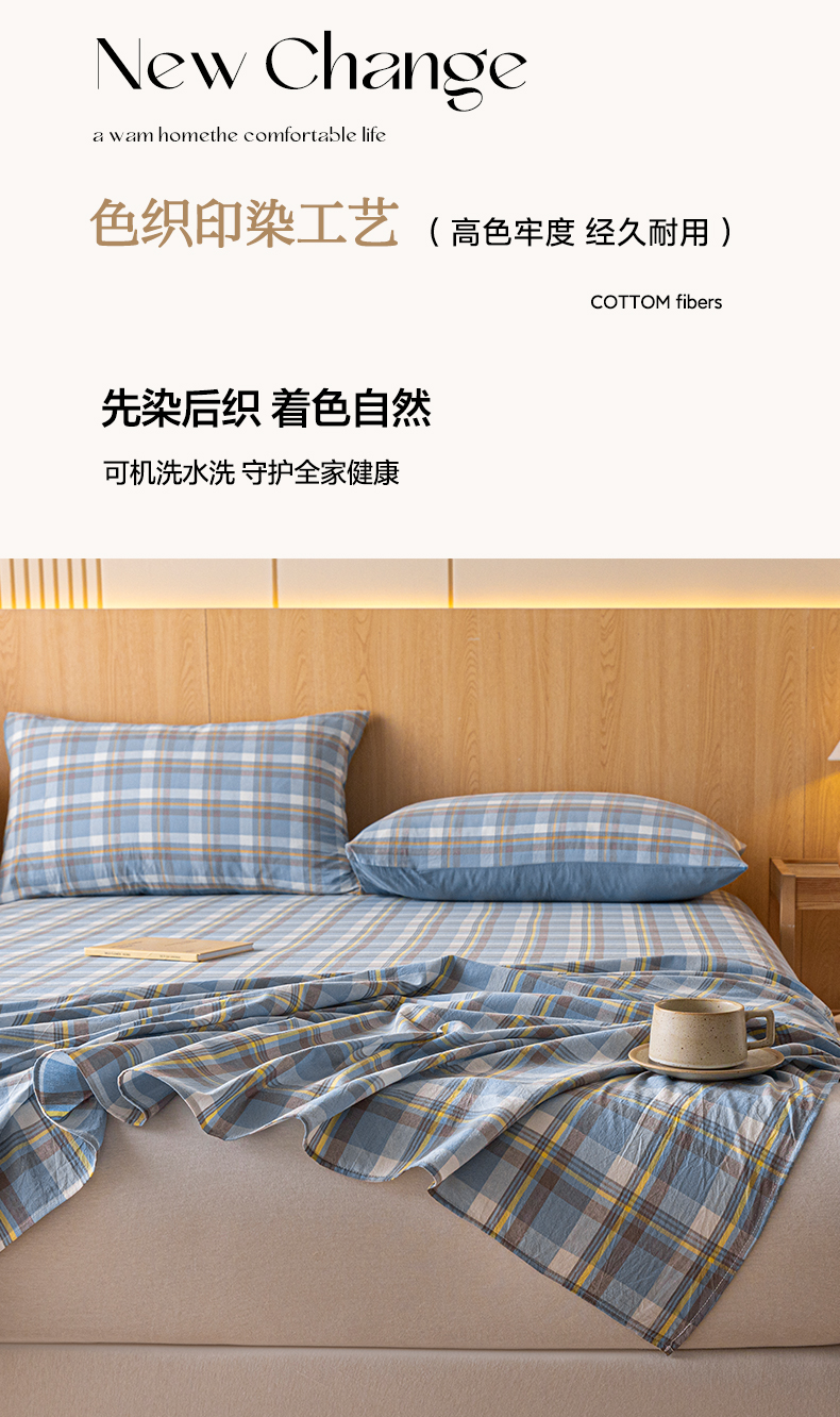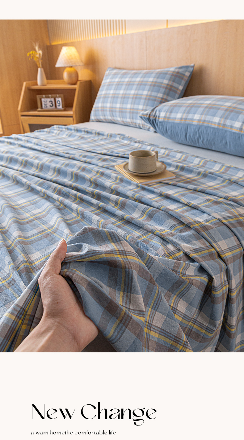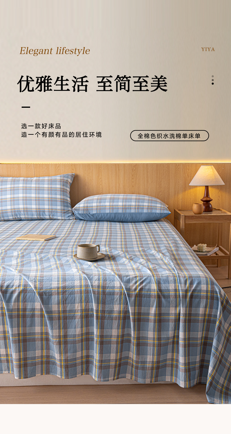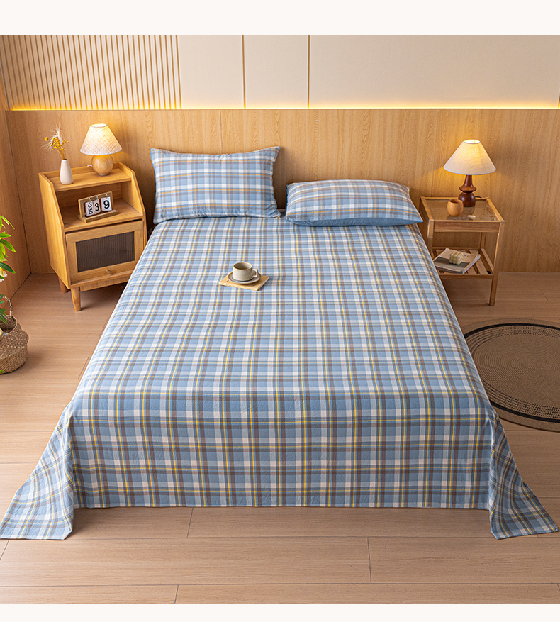 雅居纺家纺 2024新款全棉色织水洗棉单床单 床单-蓝调格